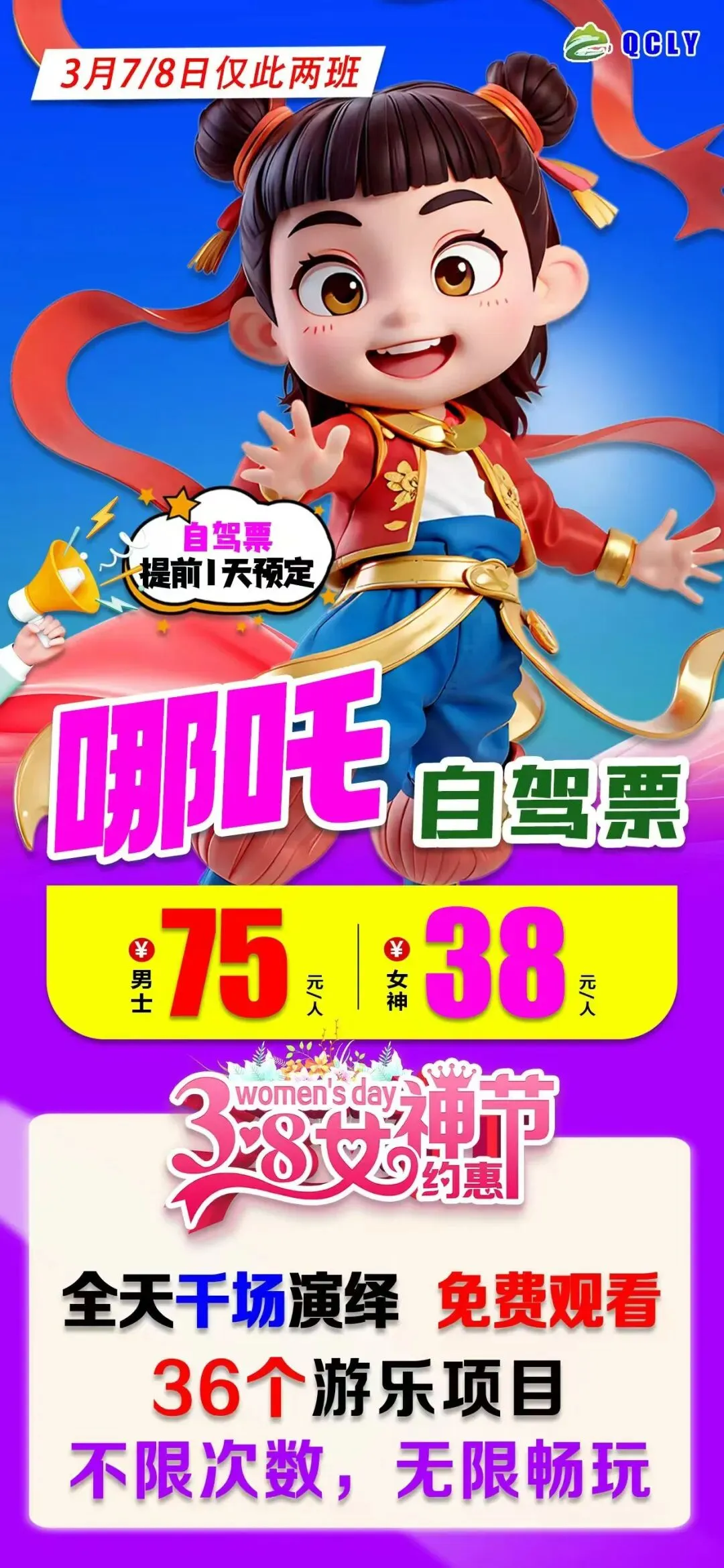 🌸哪吒喊你来过节,三八女神节特惠一日游🚌