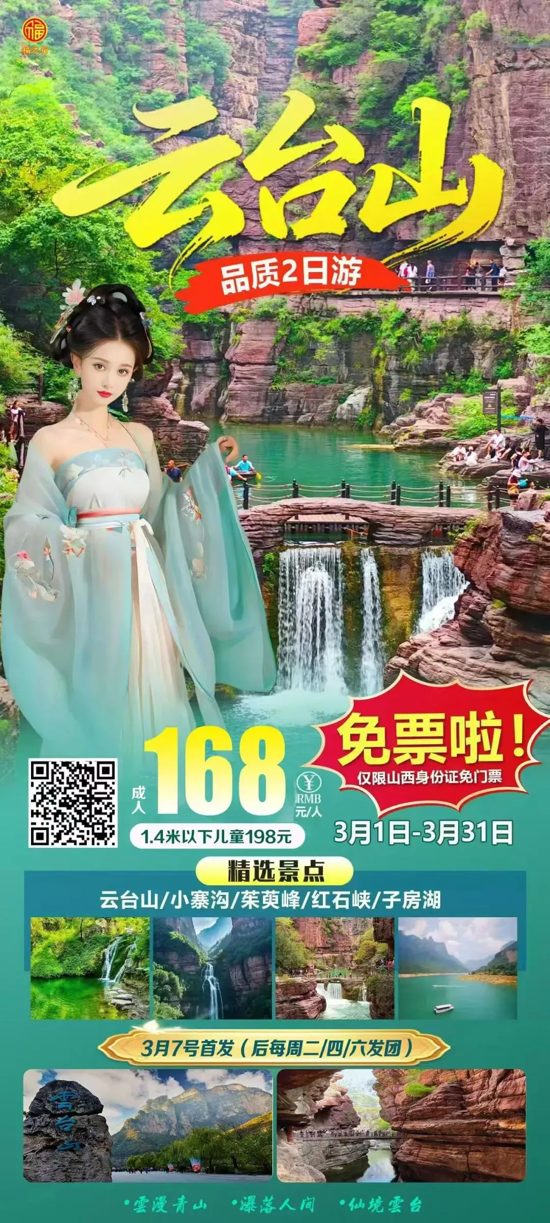 小西天壶口一日,每周二/四/六/日   铁发‼️