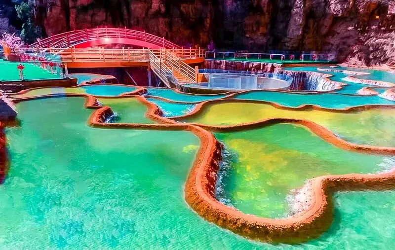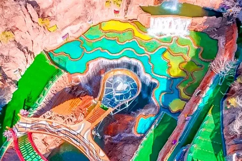 这些大大小小的水池形态各异,色彩缤纷,