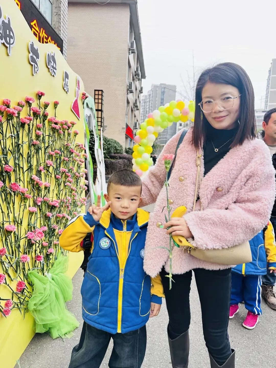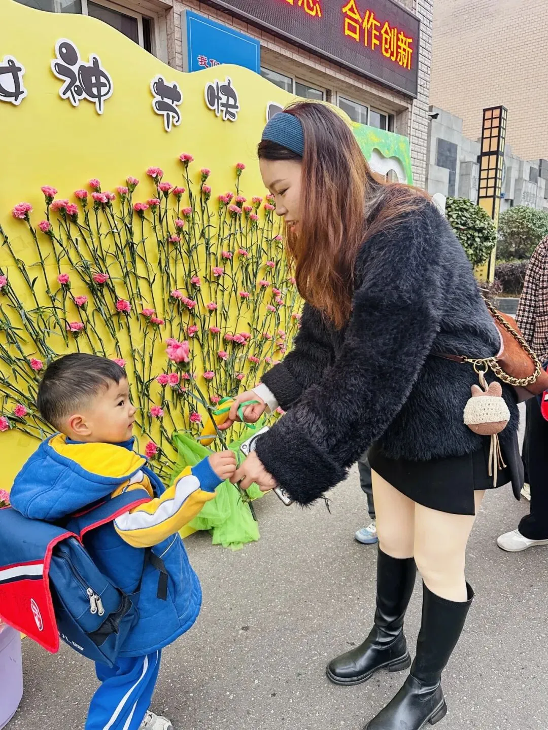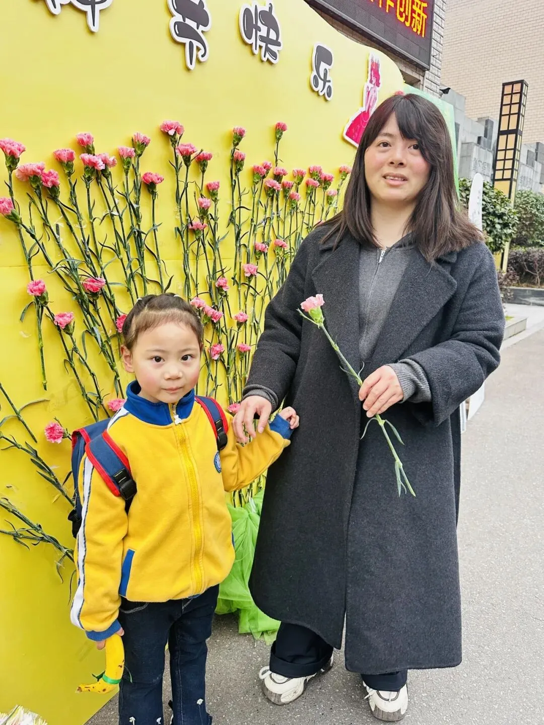 开学季恰逢遇上三八女神节,宝贝们小手捧起娇艳的康乃馨,献给最爱的家人,大声说出:“妈妈,节日快乐”!