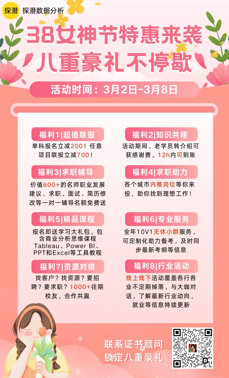 女神节不是用来观望的,是用来蜕变的!别人逛街、刷手机的时候,你悄悄把数据分析 + 商业分析这两大职场硬技能拿下,等返工、升职、谈薪那天,直接惊艳所有人。
