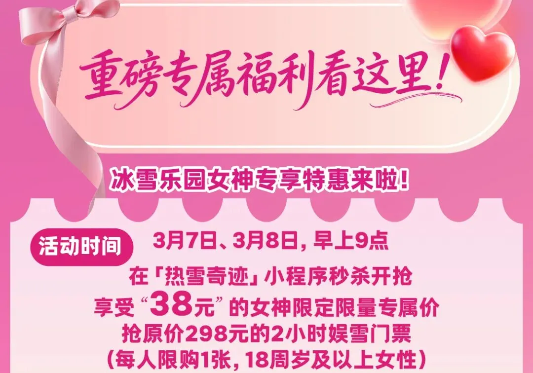 当前位置:首页>美女资讯>女神节宠你!38元秒杀雪票,还有多重福利!品牌雪服免费租、按摩免费体验等!