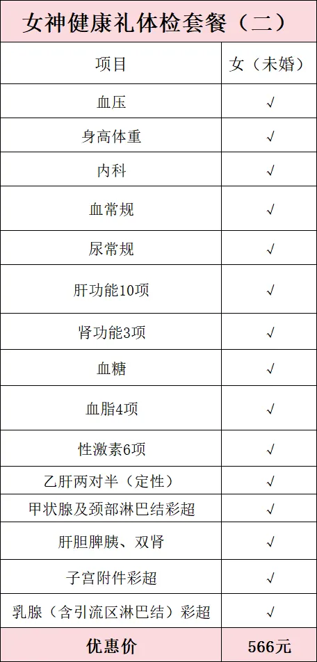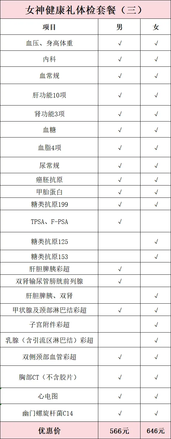 臻宠女神 健康献礼 | 体检套餐优惠价格公示