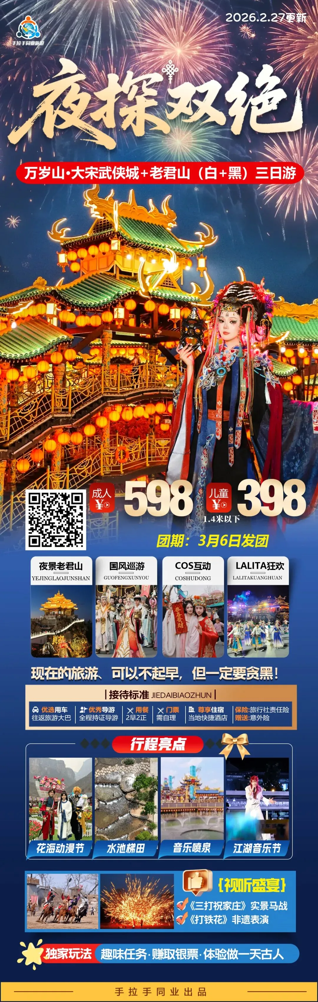 🌟【夜探双绝】万岁山大宋武侠城+老君山夜景三日游