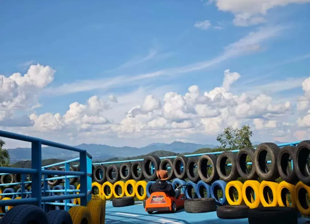 多重螺旋弯道,顺流而下,水花飞溅间尽是欢声笑语。彩色玻璃通道与青山绿水相映,随手一拍都是大片!