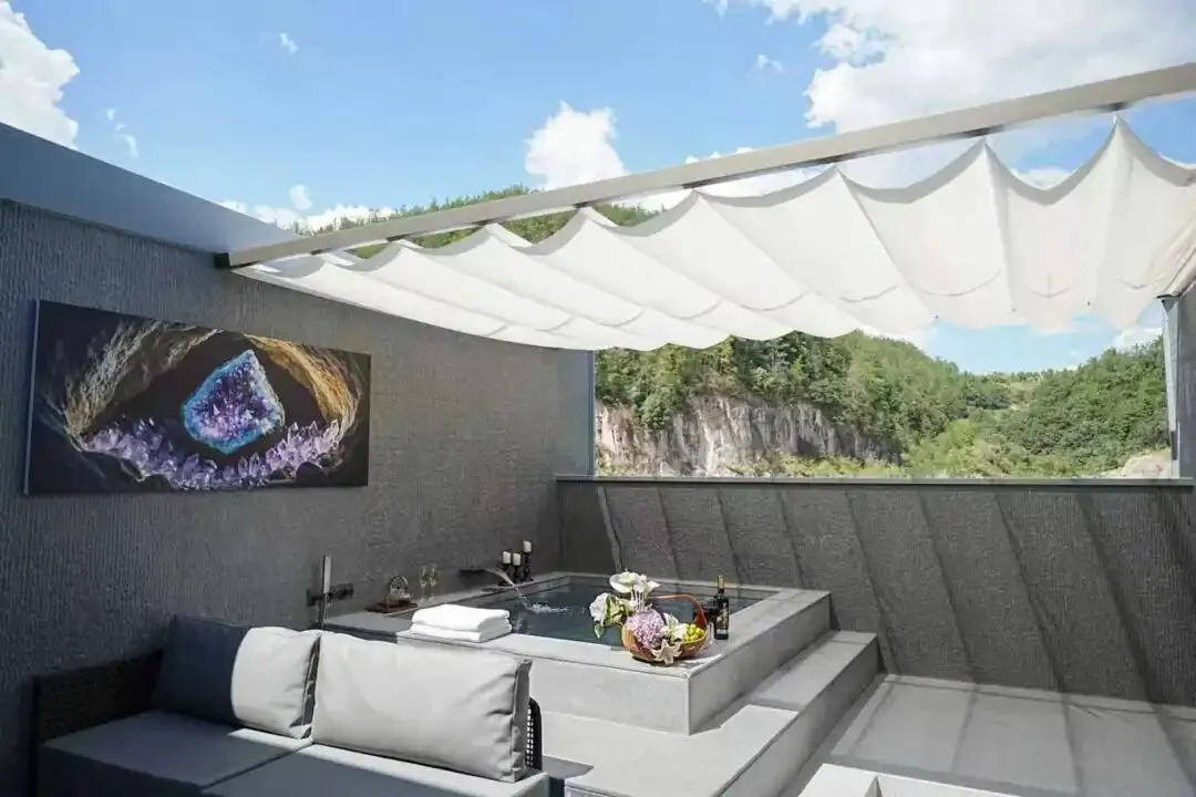 舒享休憩:入住地心温泉酒店,部分客房设有私汤,配合智能客控系统,为旅程画上舒适句点。