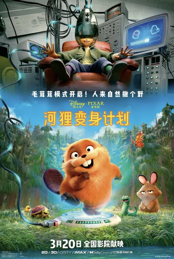 少女梅宝(佩珀·柯达 Piper Curda 配音)偶然借助突破性技术,让自身意识“跳脱”身体,进入机械动物体内,“变身”为一只活泼灵动的河狸,从而得以潜入动物社群内部,更以“人类思维闯入动物本能”的独特视角,揭开一场充满意外与温情的野外探险。