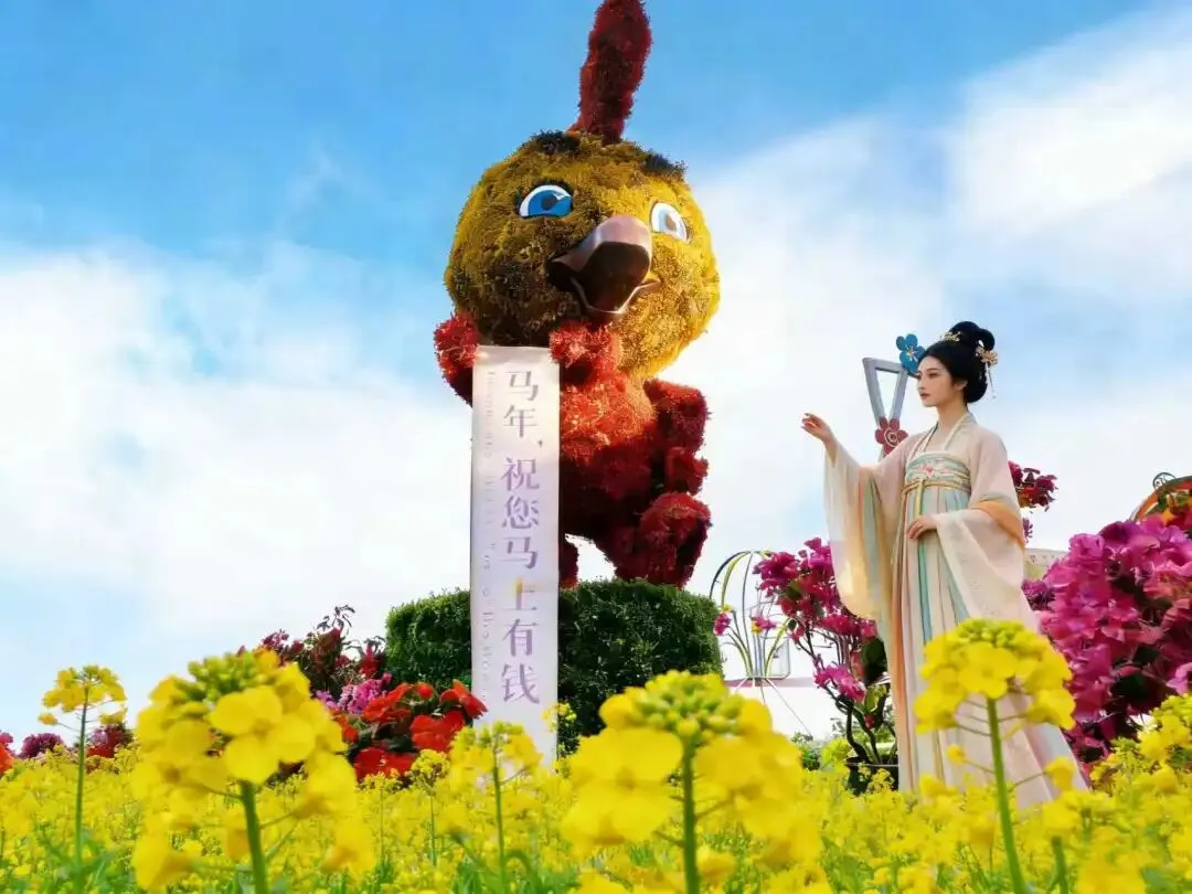 首届2026东莞迎春花博汇正在举行至4月12日,以荷塘印象680亩田园综合体为基础,依托园区百亩油菜花、格桑花、向日葵花海及万棵桃树为背景,以马年主题花卉、田园绿雕工艺、花雕艺术、三角梅花海、盆栽花卉、花田喜事等花卉观赏活动,融合迎春民俗文化、汉服 NPC、送财转运活动、田园美食、农耕体验、雪乡打卡、骑马表演等活动,让广大市民度过一个愉快的新春假期。