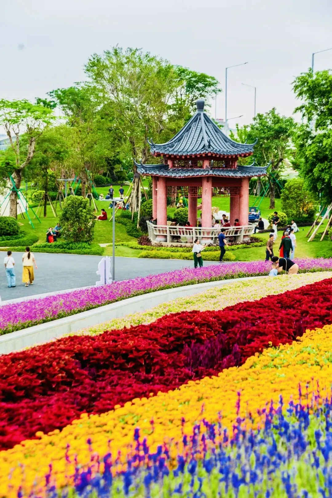 涵盖步行街区、花果山湿地景观区、花海区、中心广场区、植物迷宫区、阳光大草坪区、老年及儿童活动区、游泳区、停车区等9个区域,共包含24个项目。潮人公园以潮州大桥为轴,划分南北两大片区,涵盖20余个特色项目。
