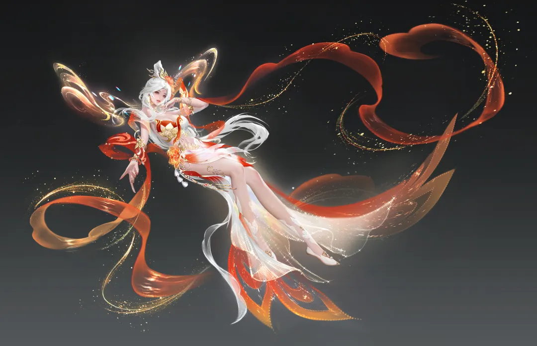 • 春晖融雪(男款):纯白长衫恰似上元夜未消的残霜,翻飞的红绸则如千树花开的灯火。