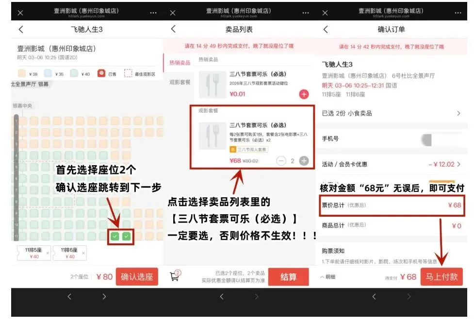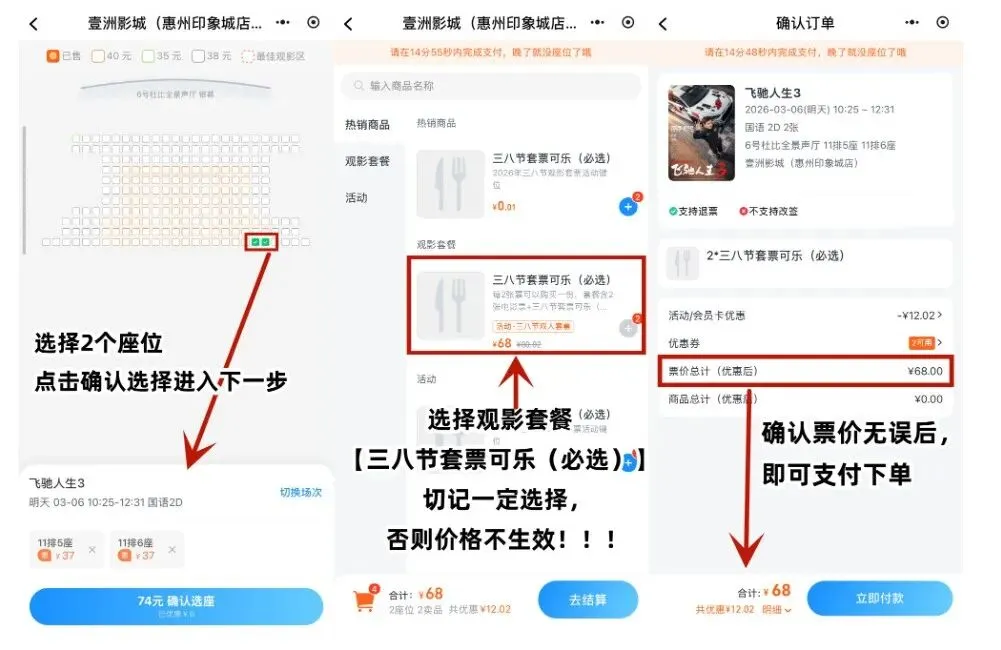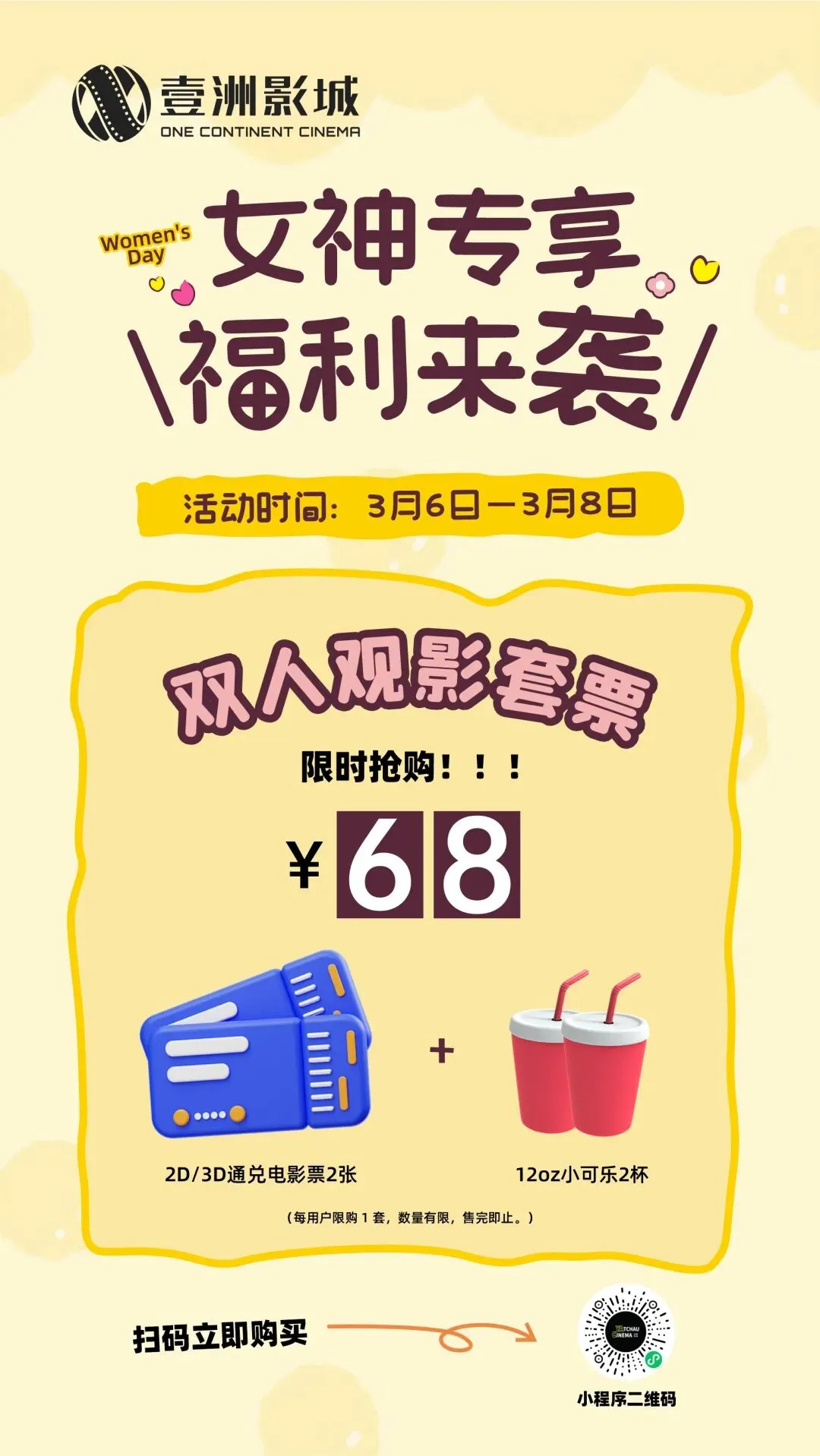 2D/3D通兑电影票2张+12oz小可乐2杯