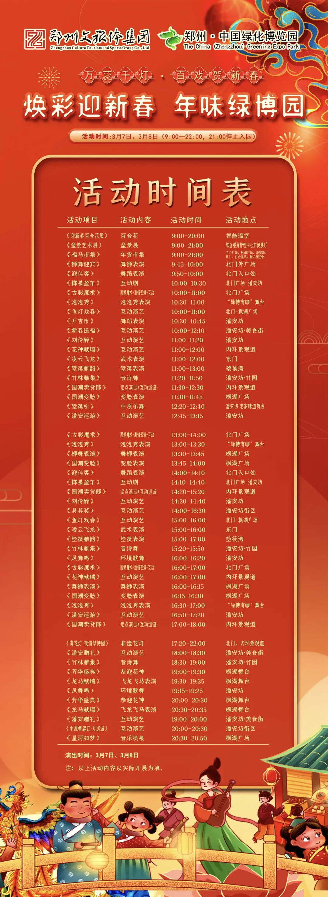 意犹未尽的新春狂欢,惊喜返场啦!错过春节演出的女神们,这次千万别再遗憾,绿博园将春节期间的演艺悉数保留,让你在妇女节期间,也能感受满满的热闹与欢喜!