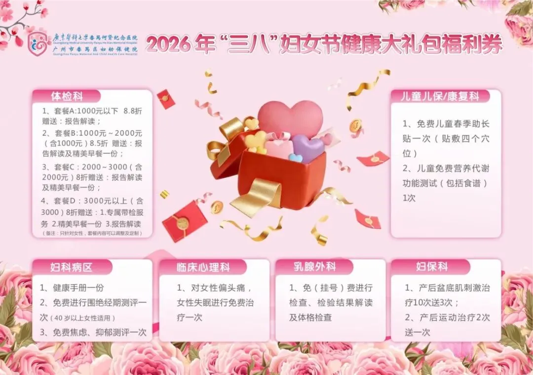 “三八”女神节专属福利|广东医科大学番禺何贤纪念医院健康大礼包来袭,守护你的全周期健康!