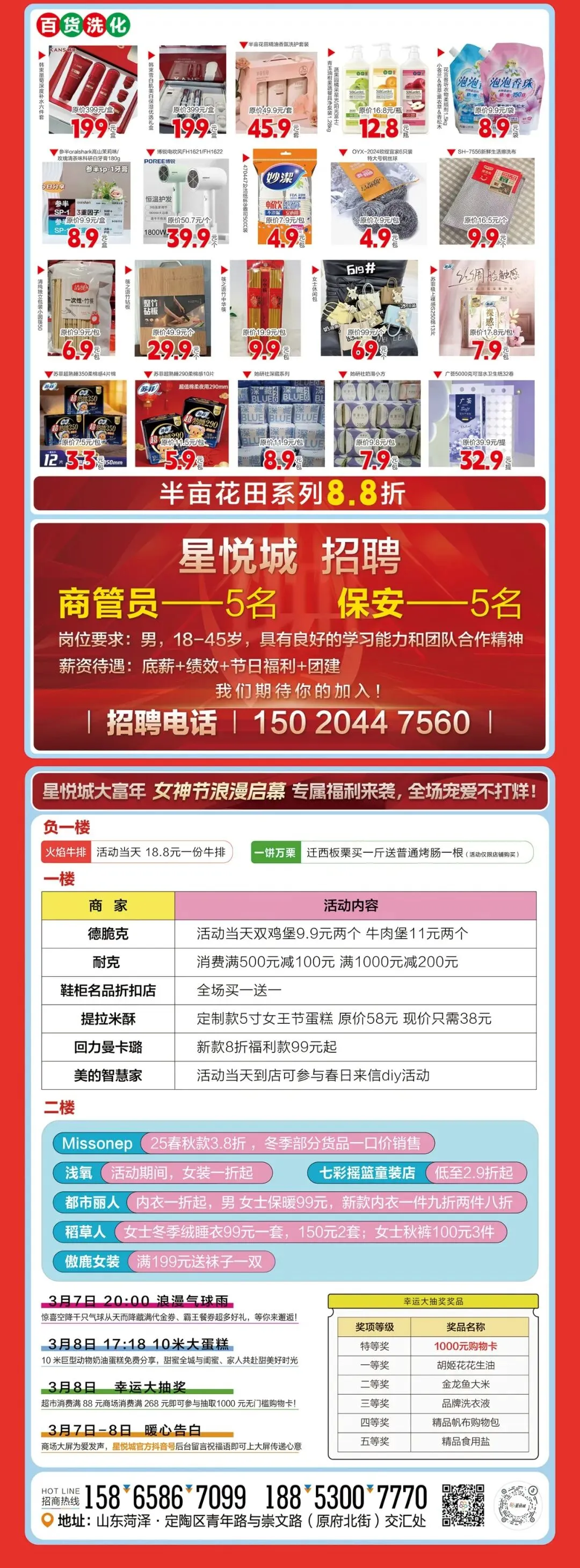 抽奖福利更是诚意满满!3月7日-8日,凭消费凭证即可参与幸运抽奖,特等奖是1000元购物卡,还有胡姬花花生油、金龙鱼大米、品牌化妆品、精品食用盐等丰厚奖品,让每一位女神都能满载而归。