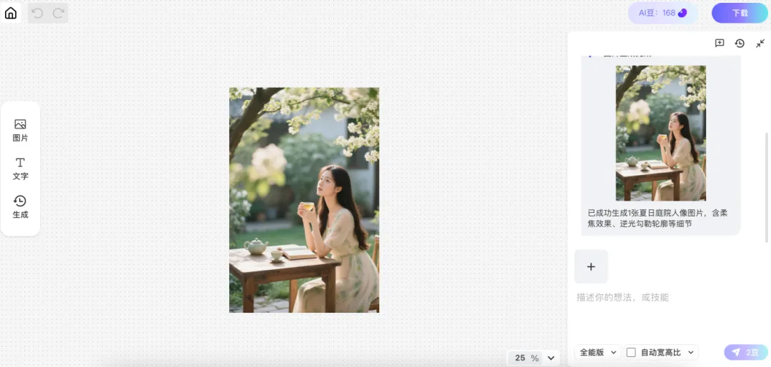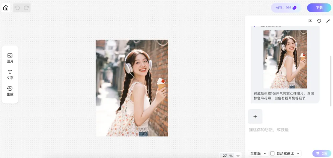 对于生成的图片,如果不满意细节,不用手动抠图,直接输入描述词。