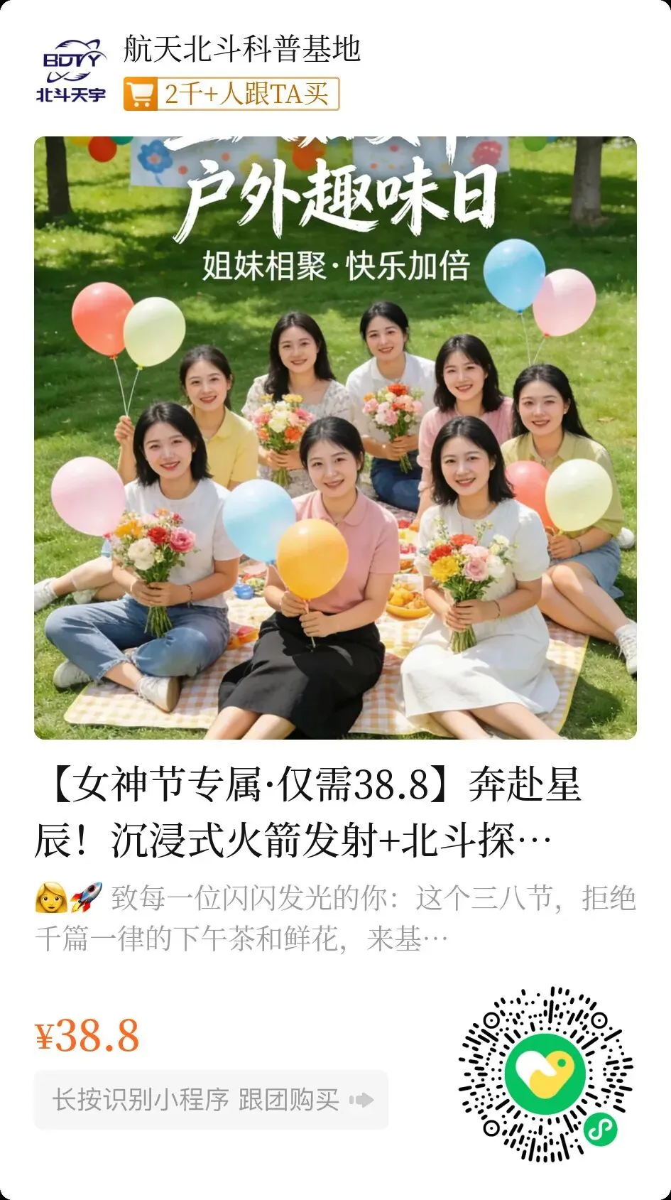 👩‍🚀 致每一位闪闪发光的你:这个三八节,拒绝千篇一律的下午茶和鲜花,来基地奔赴一场“星辰大海”的约定!在这里,我们不仅要感受火箭的轰鸣,更要像航天员一样,挑战风速,逆风奔跑!
