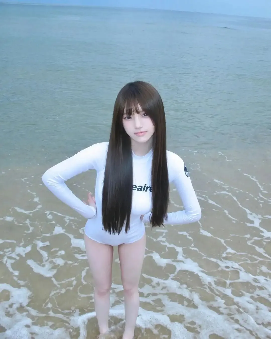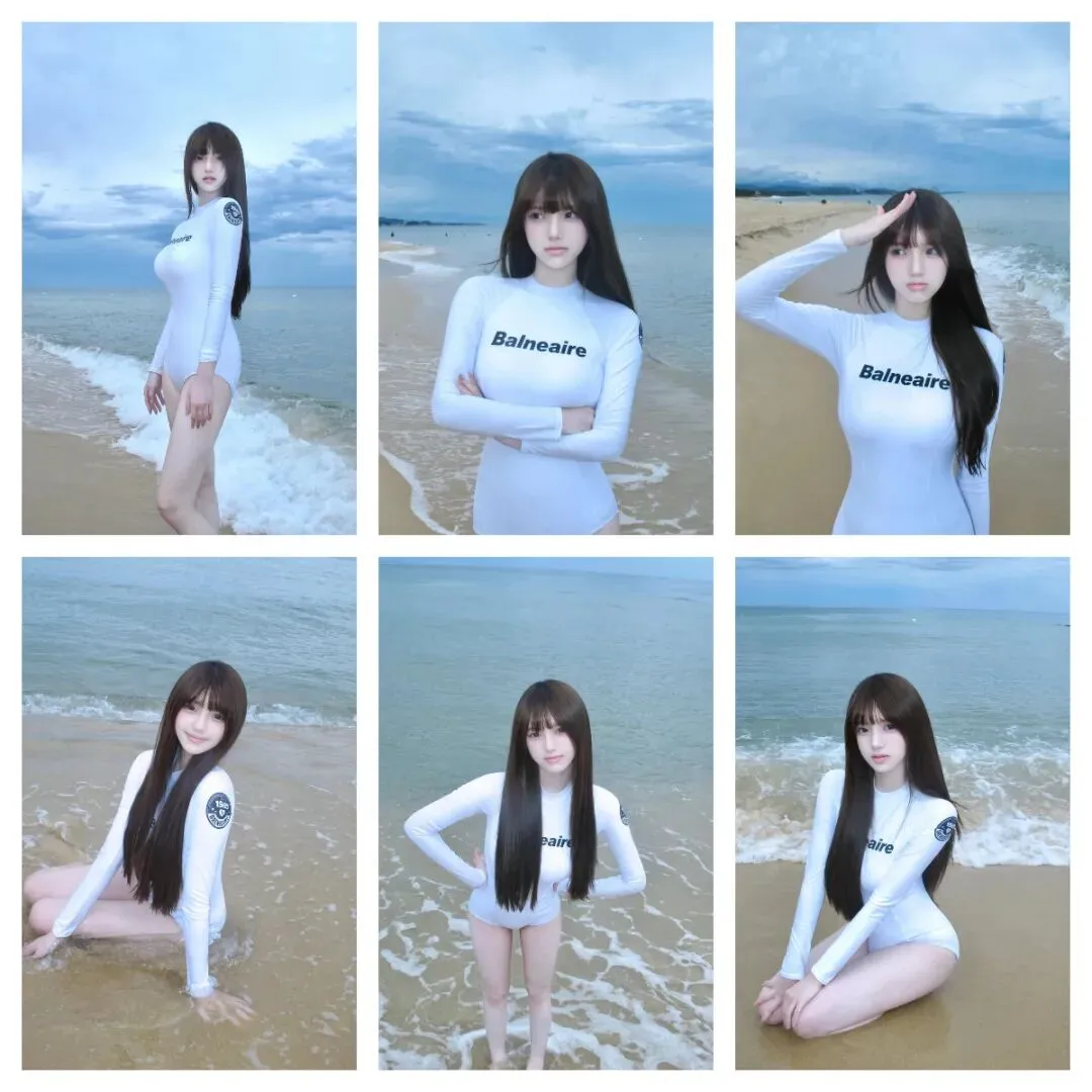 很多女生去海边度假拍照时,总觉得穿什么才能既显身材又清新自然。其实一件简约纯白的修身长袖连体泳装就够了!它自带高级感与青春活力,搭配超长直发、空气刘海和清透妆容,在沙滩与海浪的背景下,轻松拍出氛围感爆棚的夏日写真。只要放松身体、自然微笑或摆出简单pose,就能展现出慵懒又迷人的海边少女感。下面这组照片动作超级简单,很适合女生海滩旅游拍照,一起来学吧!