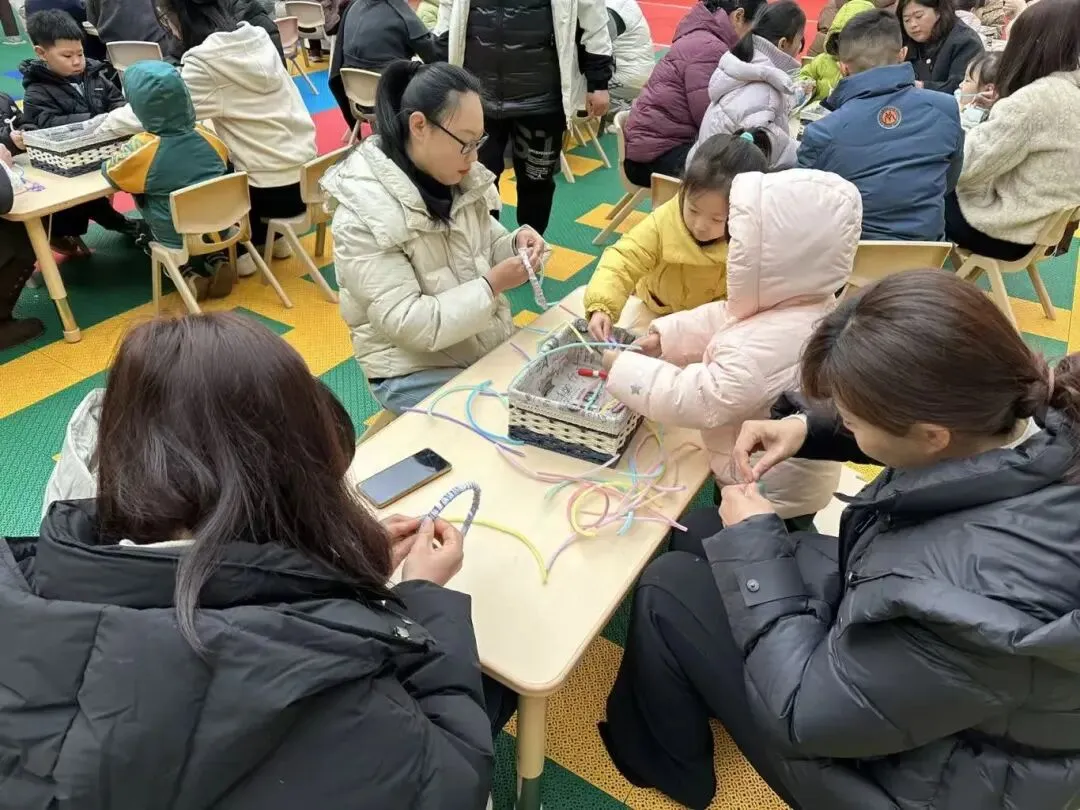 在手工制作环节,宝贝们和妈妈一起动手制作扭扭棒发箍,灵巧的小手缠绕出五彩的美好。简单的材料,在亲子协作下变得独一无二,每一个发箍都代表着孩子对妈妈最纯粹的爱意。