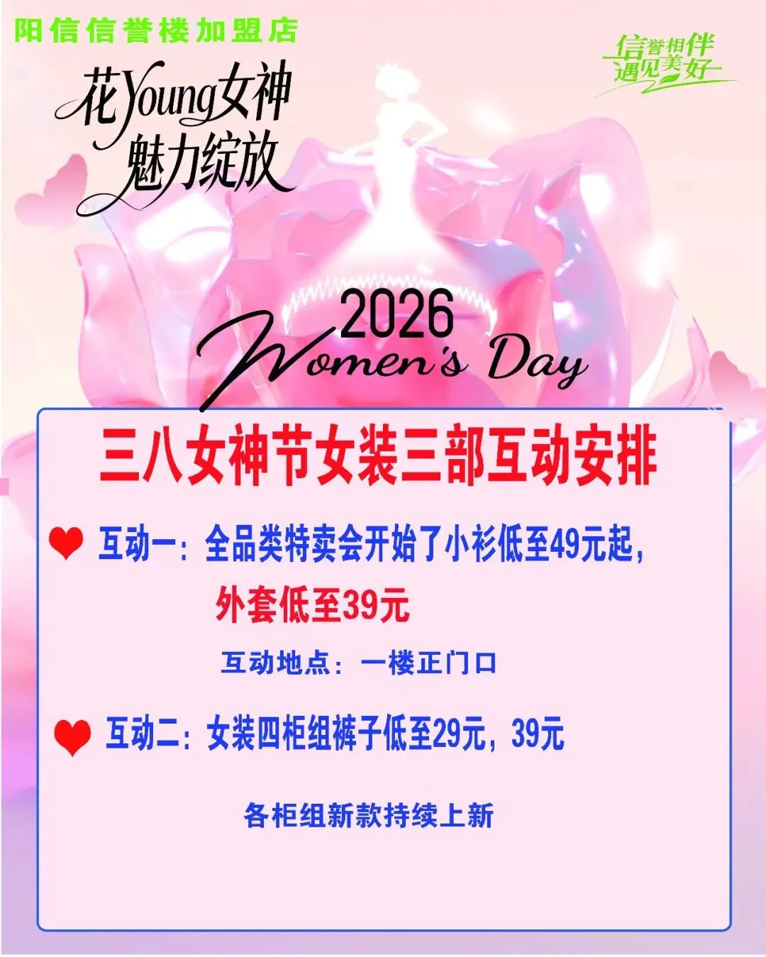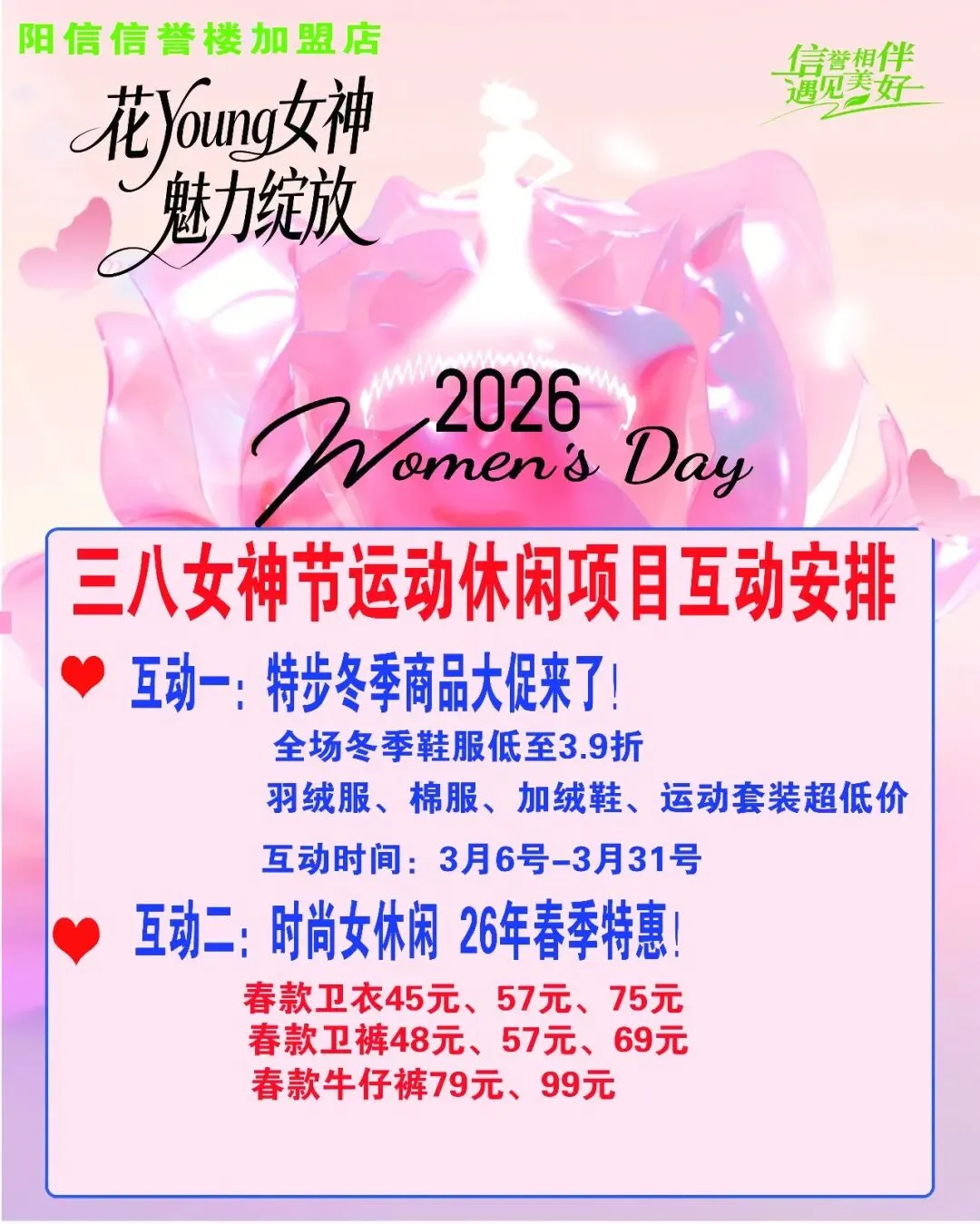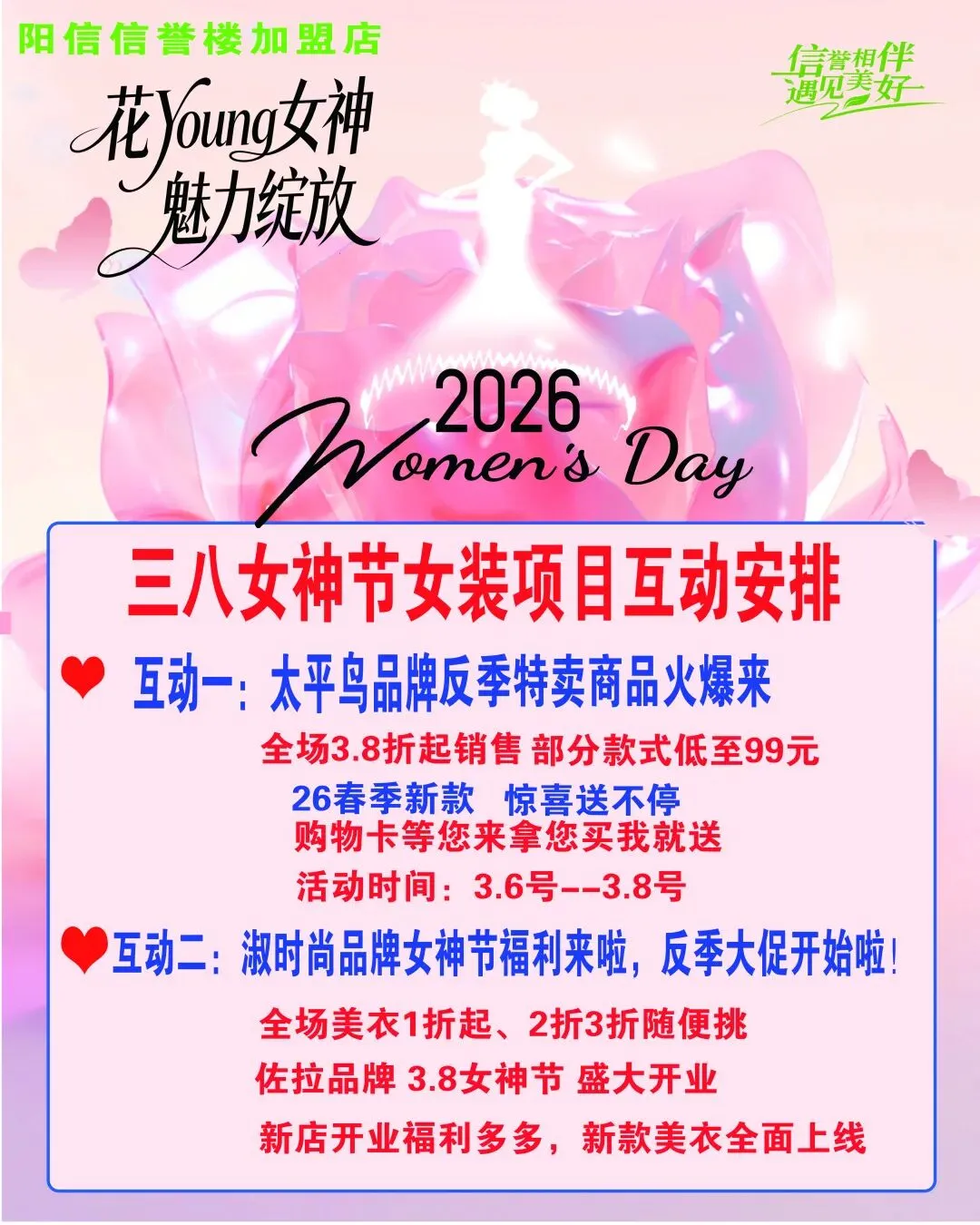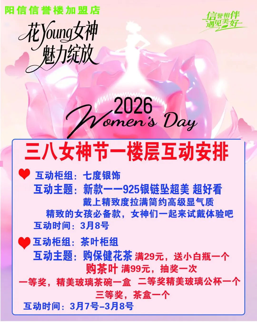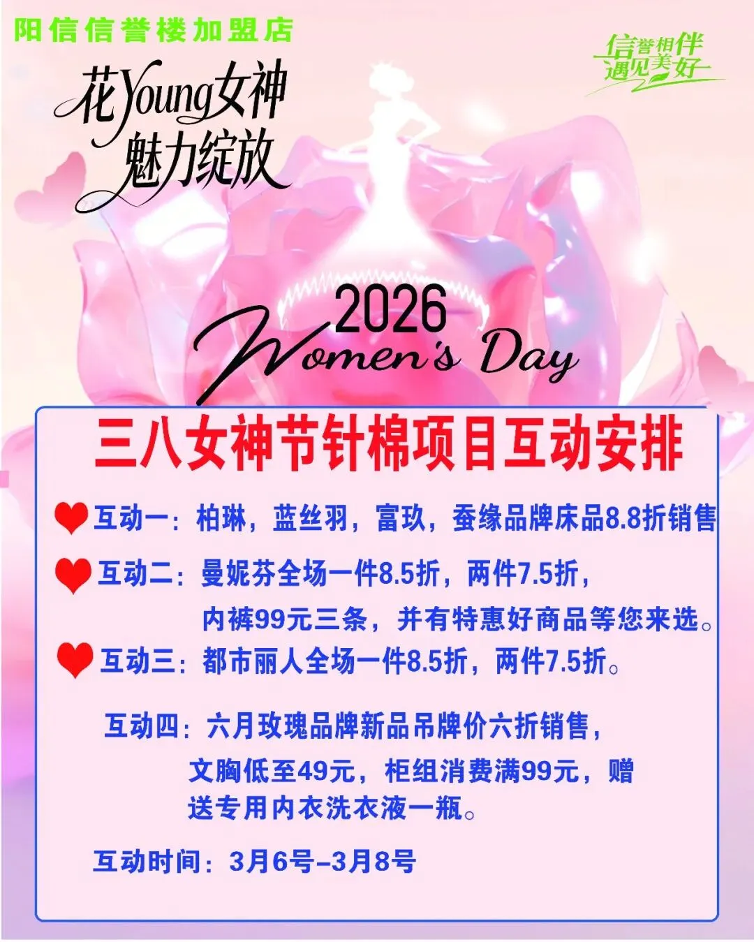 当前位置:首页>美女资讯>【阳信信誉楼加盟店】花漾女神节,魅力绽放.3月6日~3月8日(周五~周六)各楼层互动安排,超多惊喜等您来!