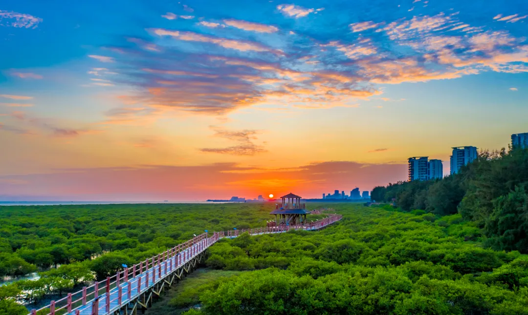 北海金海湾红树林生态旅游区是国家4A级旅游景区,是广西北海滨海国家湿地公园的重要组成部分,以3000多亩原生红树林构成的“海上森林”为核心,汇聚百种鸟类、鱼虾、蟹贝等海洋生物,形成罕见的生物多样性宝库与天然生态屏障。这里宛如天然氧吧,负氧离子含量极高,不仅可以观赏红树林潮间带奇观,赏疍家非遗风情表演,参观灯塔展馆体验海洋文化,游览国际户外动态雕塑长廊,还能体验趣味赶海拾贝,是集自然观光、文化体验、生态研学教育于一体的滨海度假胜地。