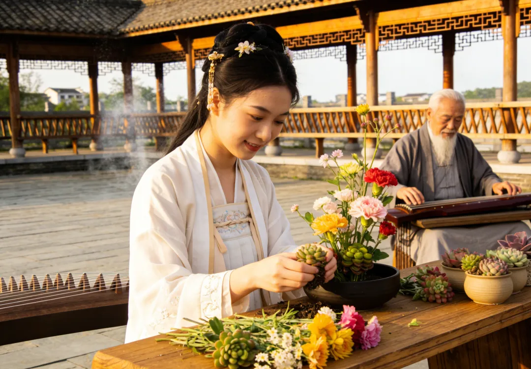 古琴声声,花香四溢,