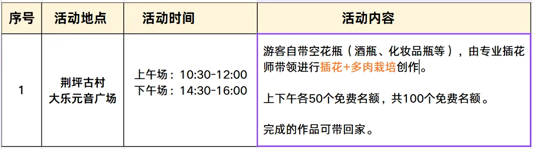 「 活动时间和内容表格」