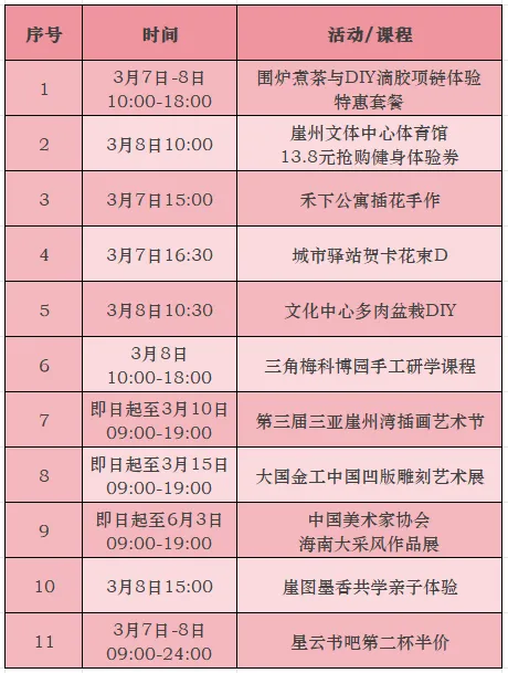 ②3月7日至8日期间自行选择并参与上述任意3项活动,每项活动拍摄1张现场参与照片作为打卡凭证。