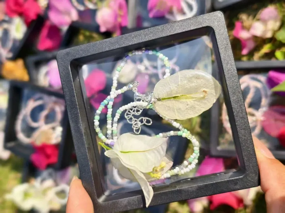 三角梅科博园特别推出围炉煮茶与DIY滴胶项链体验特惠套餐,在花团锦簇间围炉而坐,品一壶春茶,再亲手制作一条独一无二的滴胶项链,将这片春天的色彩封存进项链里。