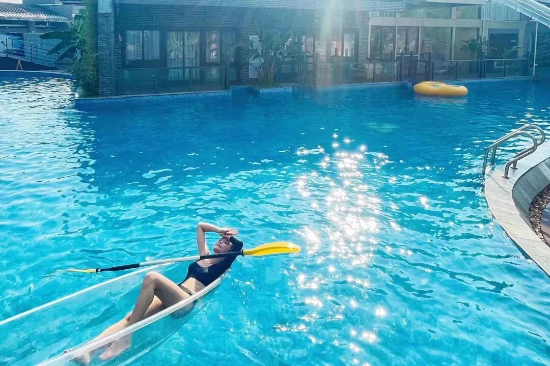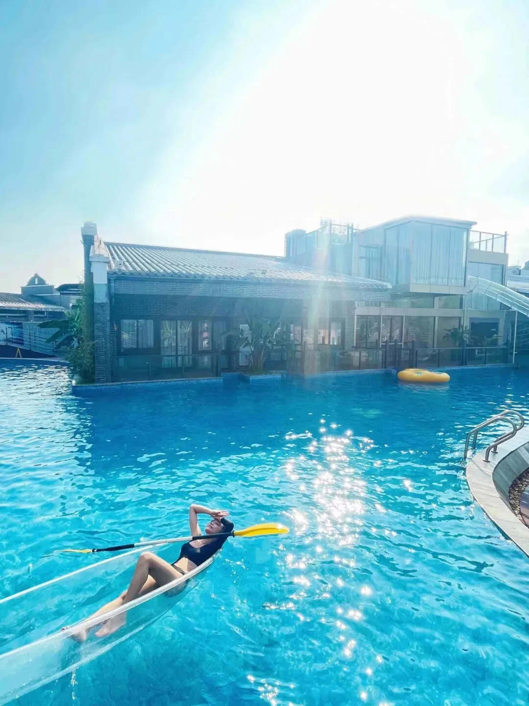 酒店有华南水上威尼斯之称,泳道采用无边泳池设计,相当于拥有1000平米的超大无边泳池。泳道设置了各种丰富好玩的水上设施,炎炎夏日,你可以乘着小船悠悠地在泳道上漂浮;你可以和小伙伴们游泳打水仗;你可以玩到长隆同款的水上小喇叭;你还可以一头扎进像云朵一样柔软的泡泡堆里。