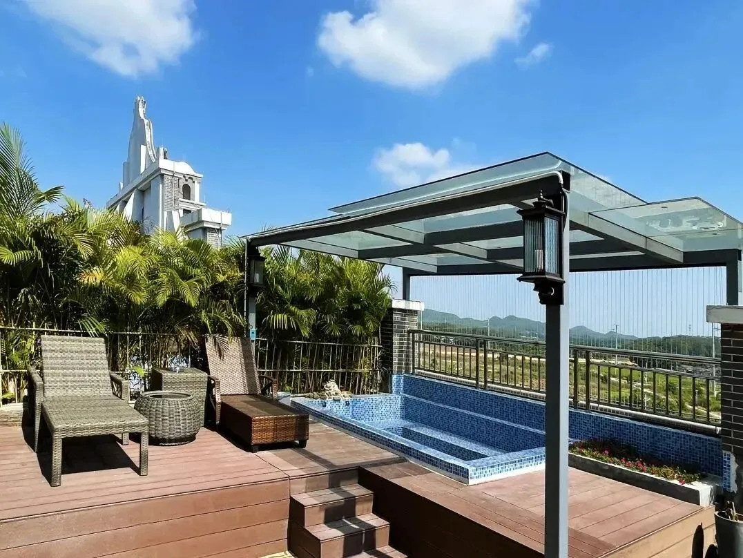 一房一厅亲水别墅,独立泡池,带花园,麻将机,烧烤炉,给客人带来悠闲自然的度假体验。