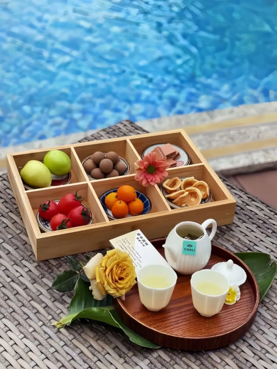 拥有两房、三房、五房亲水别墅供家庭出游选择,均配有独立庭院和养生泡池,既可以在庭院里快乐BBQ,又可以泡进泡池里放松身心,独享自在快活,尽收四面旖旎醉人风景。
