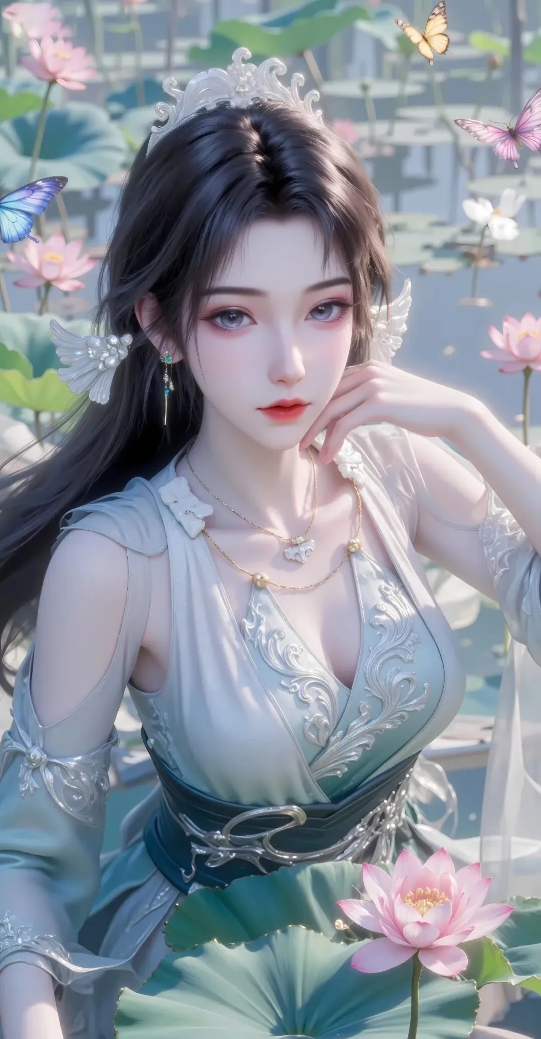 唇形饱满温润,唇色是浓郁的豆沙色,说话时语调沉稳从容,字字清晰,既有峰主的威严,又有女性的细腻,每一句话都掷地有声,能精准掌控局面;偶尔展露笑容时,明媚动人,既能化解紧张的博弈氛围,又能安抚麾下弟子的情绪,清润的容颜足以让人心生敬畏与好感[6][9]。发丝依旧是乌黑柔顺的,通常梳成精致的高挽发髻,用一枚硕大的雕花玉簪固定,发间点缀着灵珠与青兰花,既彰显峰主的华贵,又显仙韵气质,随风飘动时,与周身的灵气呼应,气场十足[2][6]。此时的她,美是雍容的、是清润的,更是有力量的,完美诠释了“刚柔并济”的特质,既可以是运筹帷幄的峰主、独当一面的元婴修士,也可以是温婉通透的同道、悉心育人的师长,是天南修仙界中最耀眼的女性角色之一[4][5][8]。