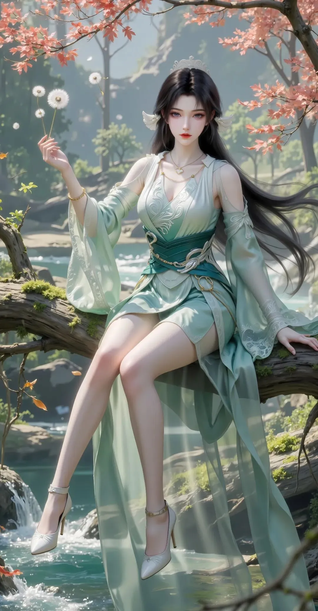 她的身形依旧挺拔,纤秾合度,肩背线条利落流畅,站姿沉稳端庄,既有元婴修士的威严气场,又有女性的温婉韵味,周身萦绕着浓郁的清润灵气,是修为达到元婴期的象征,行走时衣袂飘飘,自带天地灵气的呼应[3][8]。肌肤是羊脂玉般的莹润细腻,泛着淡淡的灵光,历经无数战斗与历练,却依旧没有留下明显的伤痕,唯有眉心的淡青色灵印,变得愈发清晰,泛着华贵的青色光芒,成为她身份与实力的终极标识,更是天灵根本源力量的体现[2][3][8]。