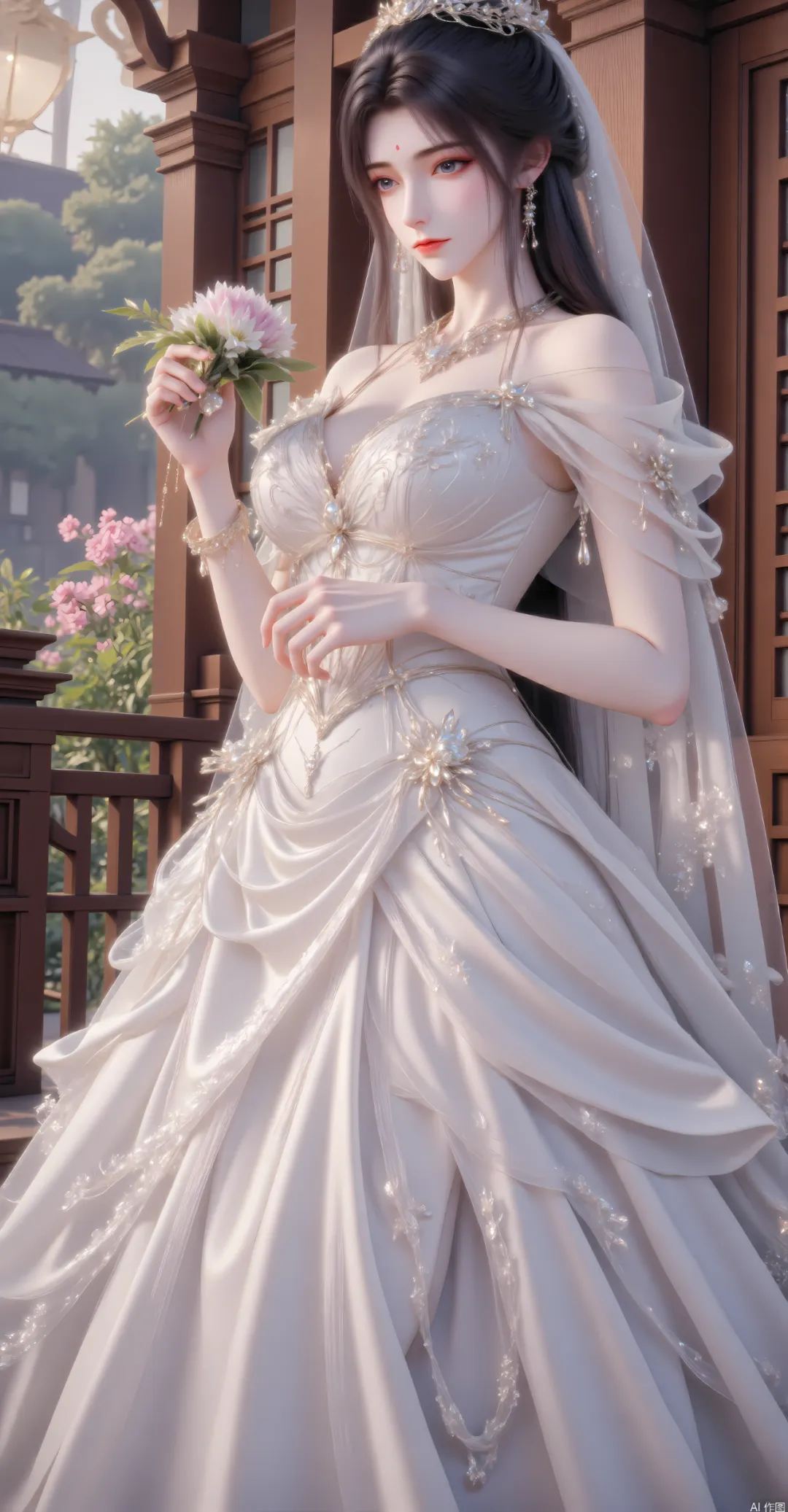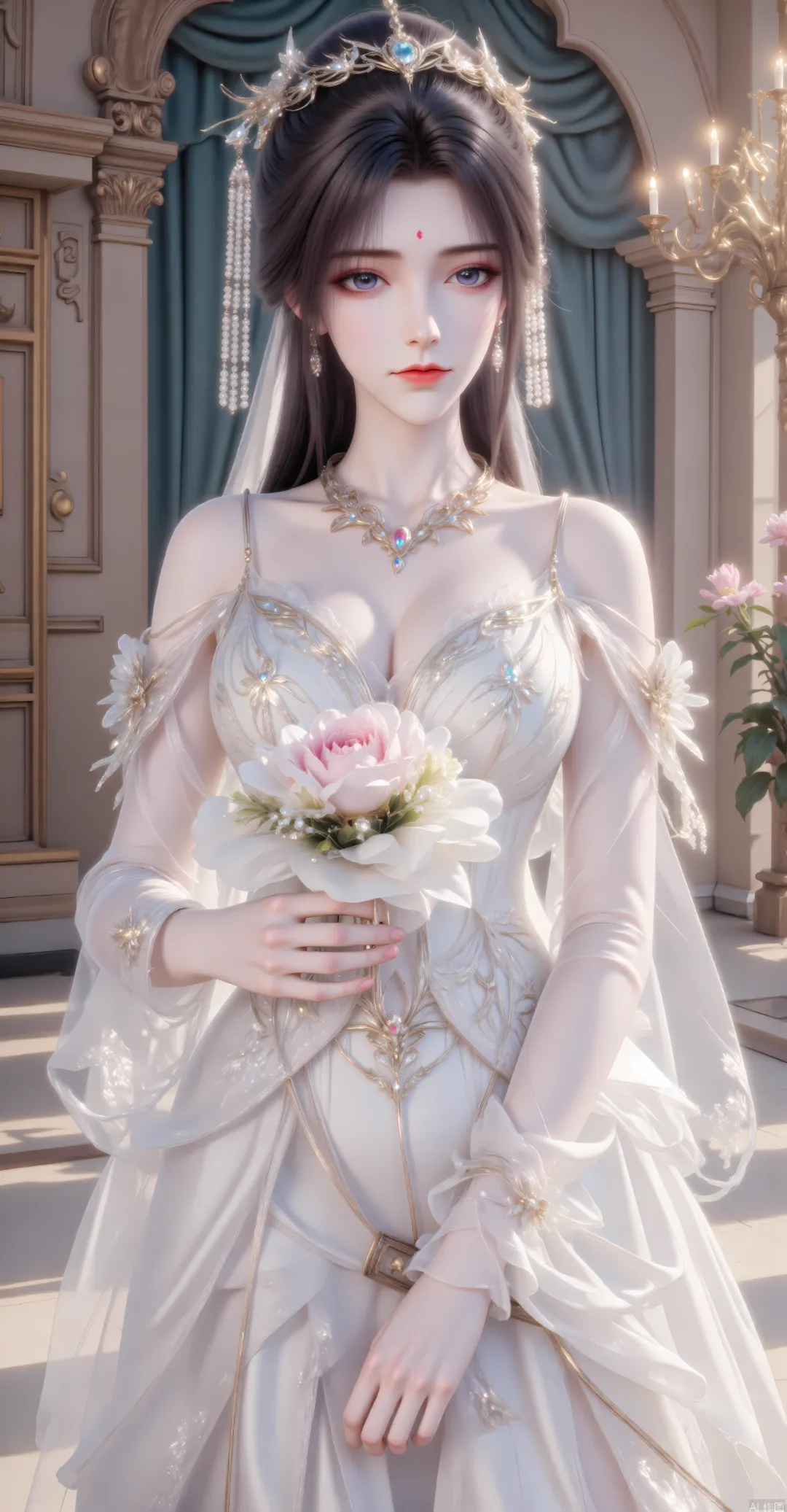 她的身形依旧挺拔,纤秾合度,肩背线条利落流畅,站姿沉稳端庄,既有真仙的威严气场,又有女性的温婉韵味,周身萦绕着浓郁的月华仙辉,是修为达到真仙境的象征,行走时衣袂飘飘,如月华流转,自带天地灵气的呼应[3]。肌肤是羊脂玉般的莹润细腻,泛着淡淡的仙光,历经无数战斗与岁月沉淀,却依旧没有留下明显的伤痕,唯有眉心的青月印记,变得愈发清晰,泛着华贵的月华光芒,成为她身份与实力的终极标识,更是青月真仙本源力量的体现[1][3]。