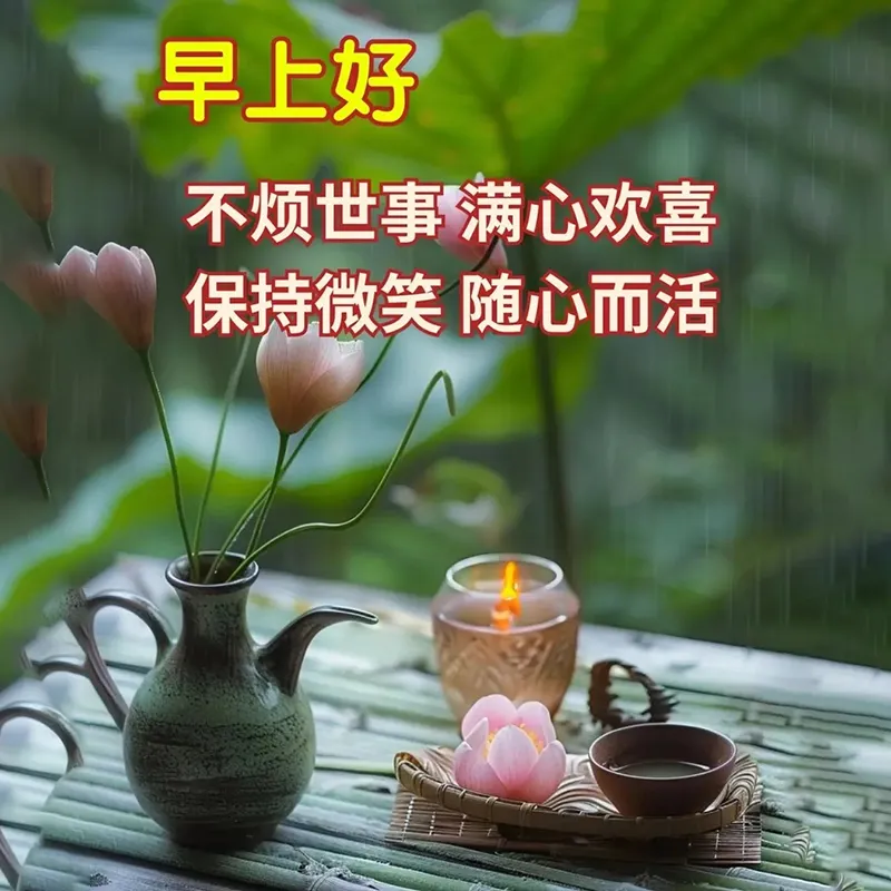 2,每一天醒来告诉自我:理由少一点,肚量大一点,嘴巴甜一点,脾气小一点,行动快一点,效率高一点,微笑露一点,脑筋活一点。清清的晨风摇响愉悦的铃铛,我的心奏起欢快的乐曲,说声“早安”,向你问好!