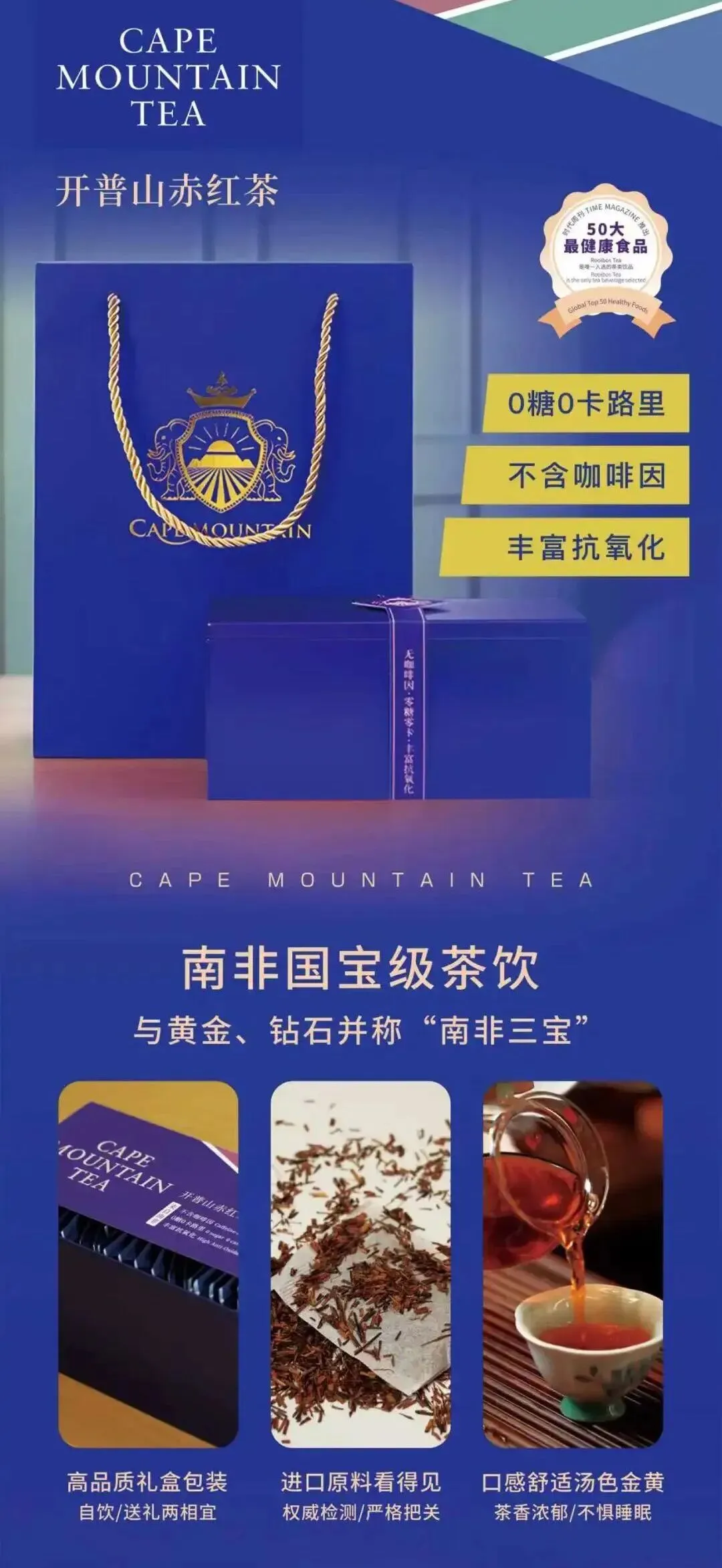 主打好物:开普山无醇起泡水(老少皆宜款)、开普山赤红茶