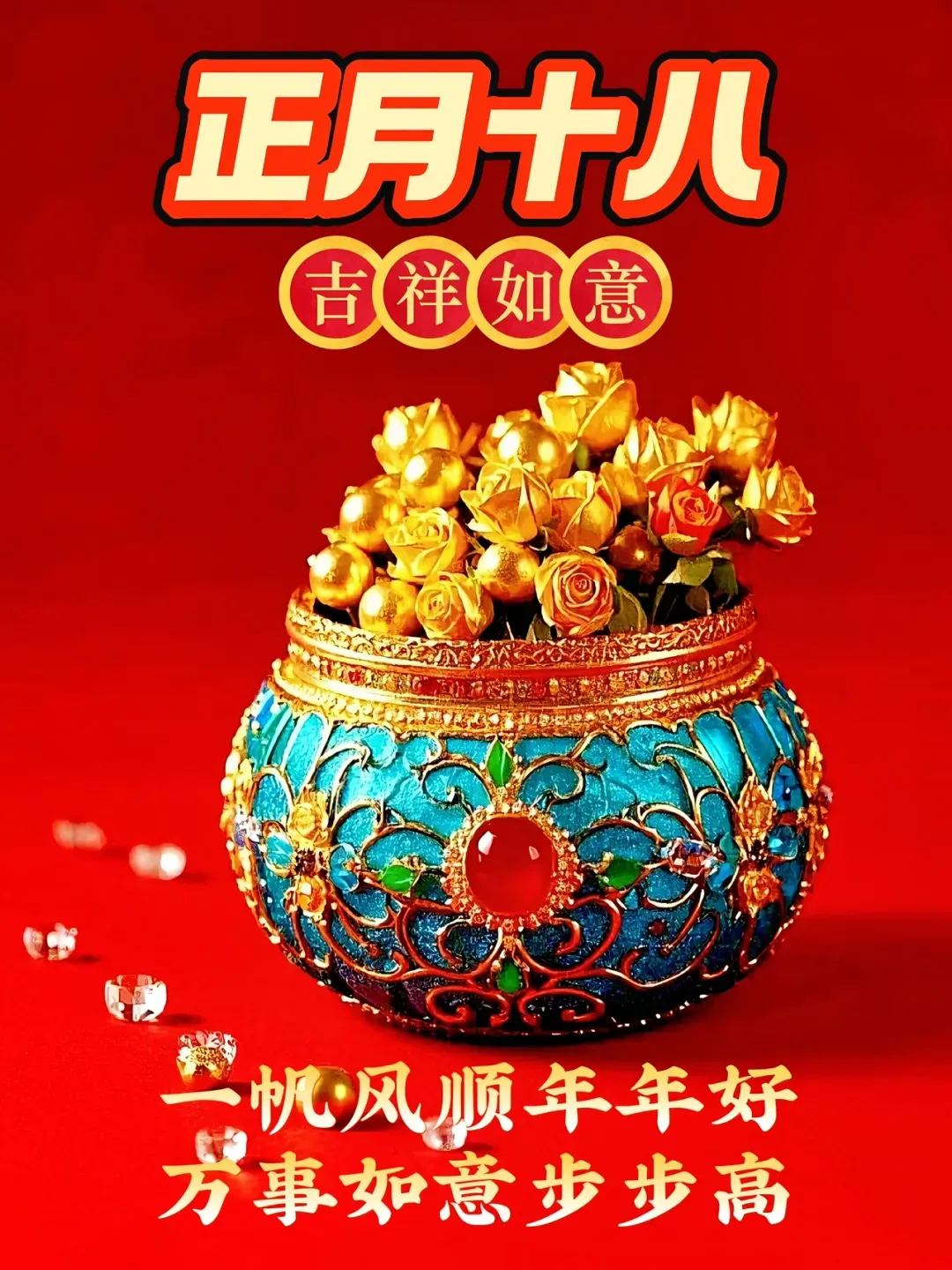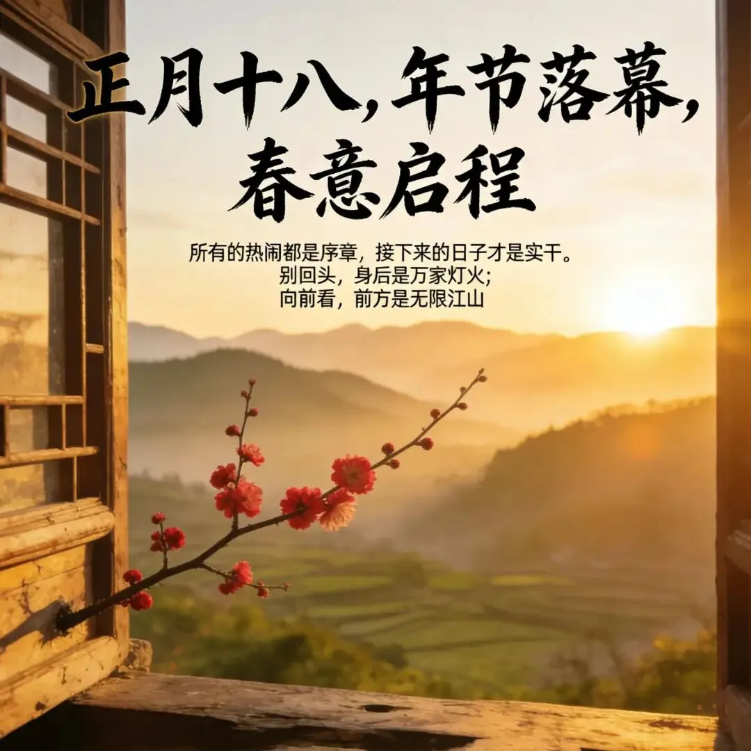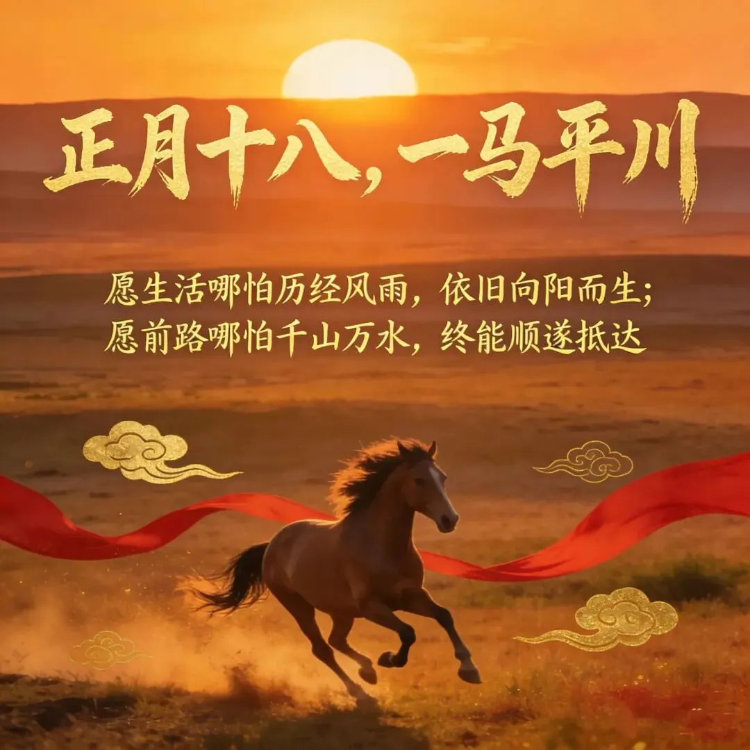 正月十八,诸事皆发。前路坦途,事业发;紫气东来,财运发;花好月圆,桃花发;洪福齐天,好运发;愿你财源滚滚,福纳八方,所遇皆欢喜,所得皆吉祥!
