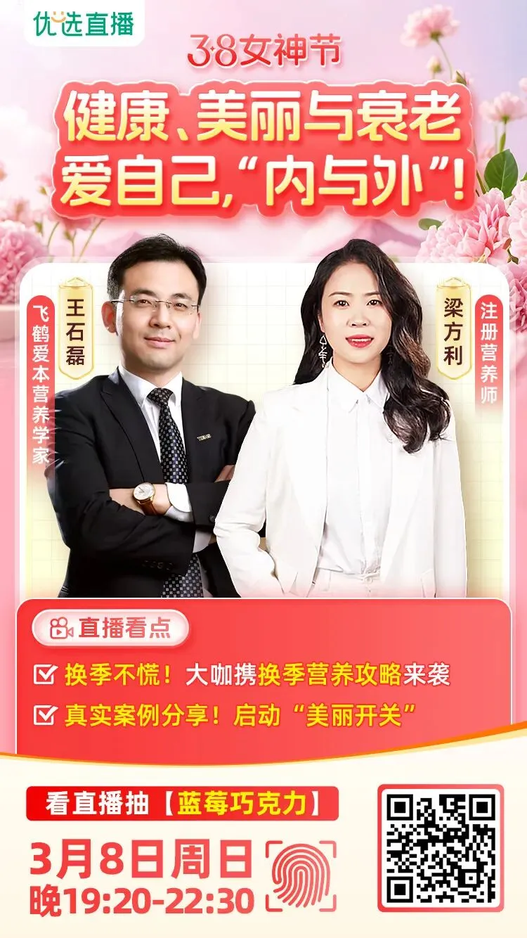 3月8日晚19:20长轻营养直播间,梁方利、王石磊与您不见不散。