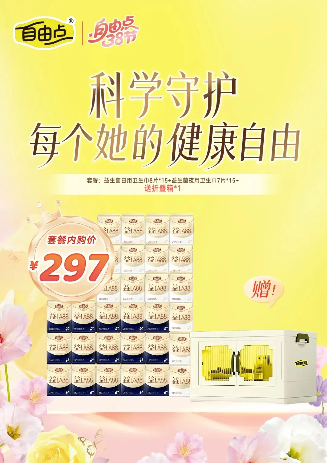套餐:益生菌日用卫生巾8片*15+益生菌夜用卫生巾7片*15+送折叠箱*1