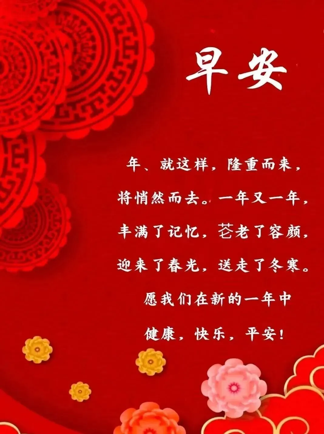 6.十八正月喜临门,祝福美好送你门。欢声笑语心中藏,幸福健康与你伴。财运亨通如意至,事业成功步步齐。祝您幸福新一年,万事如意年年好。