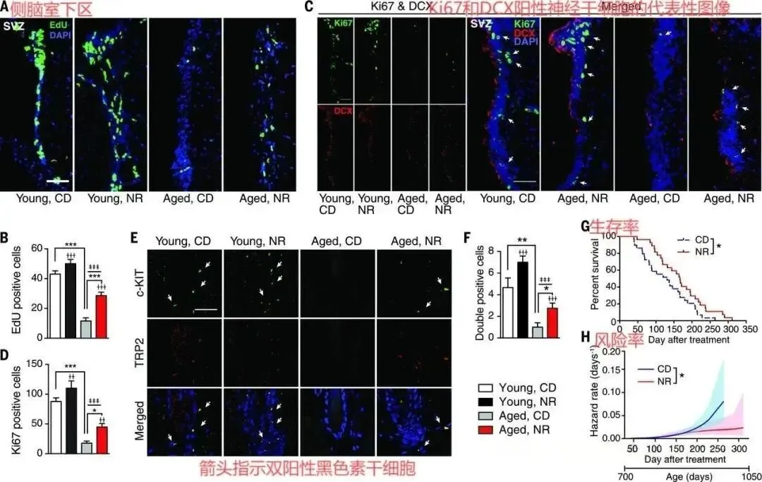 ·延长健康寿命:动物实验中,补充NAD+前体延缓神经干细胞和黑色素细胞干细胞的衰老,延长小鼠寿命