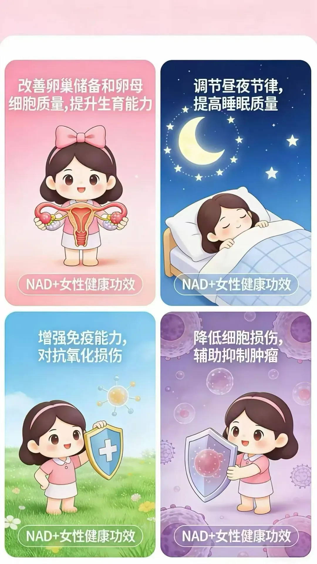 ·改善认知预防退行性变化:NAD+能减轻DNA损伤并改善认知缺陷,防止神经退行性变化【10】。
