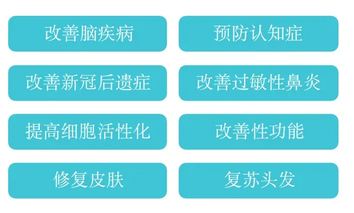 ●神经系统疾病:恢复神经系统疾病特有的功能障碍。o眼部功能:已被证实对对抗眼部衰老有效。