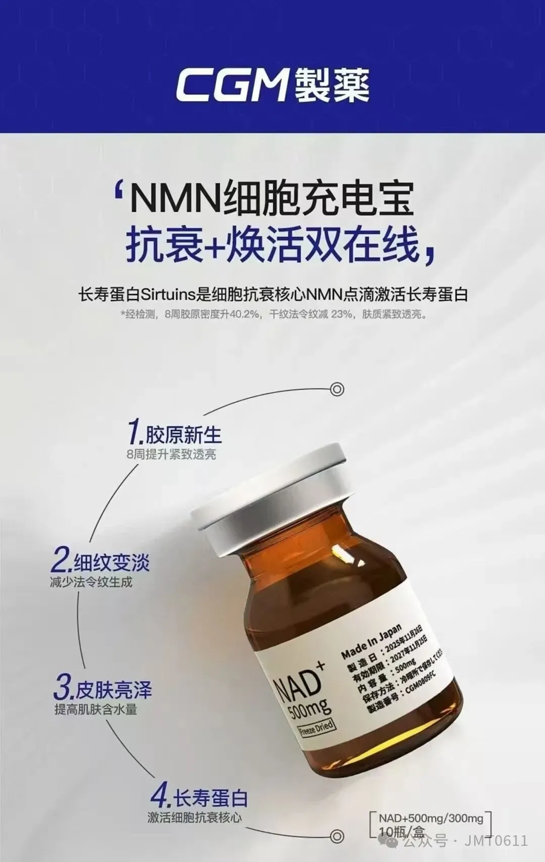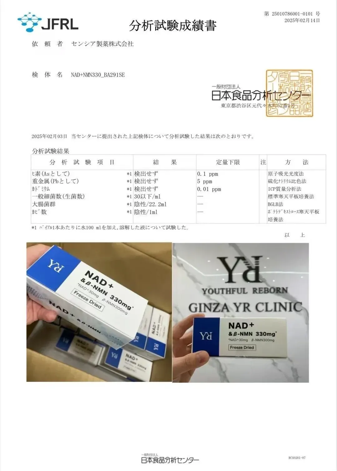 NAD+与NMN的独家配比,再生医疗·先端医疗センター100%日本原研制造,银座以及日本多家医疗现场人气点滴,每一批次除了实验失败双重检测都有第三方的试验分析报告书,客户反馈满意度非常高的一款保养制剂。