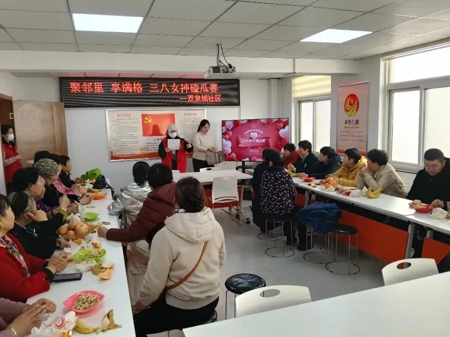 为进一步提升基层组织凝聚力,丰富妇女同胞精神文化生活,展现新时代女性风采,在“三八妇女节”来临之际,双泉城社区开展“聚邻里、享满格,三八女神嗑瓜赛”主题活动。来自社区30余名“女神们”踊跃报名,以“嗑”会友,在趣味比拼中共享欢乐时光。