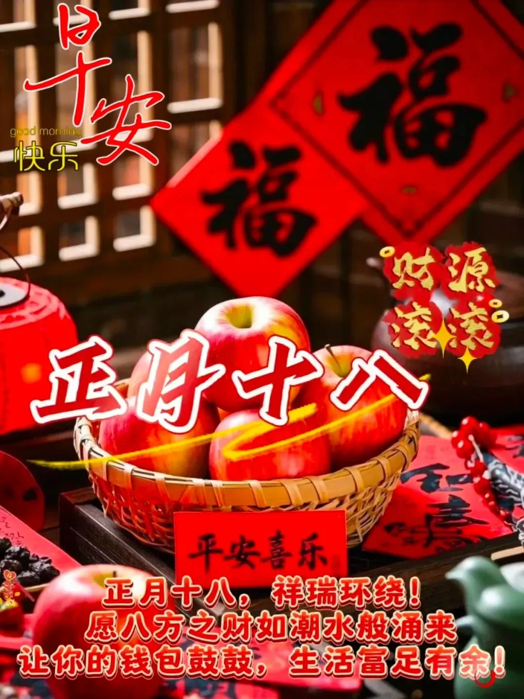 当前位置:首页>美女资讯>三月六日最美祝福语最新图片:大年十八,新的一天好运开启,春日晨光好早安福送到.八方来财,吉祥如意,富贵满堂