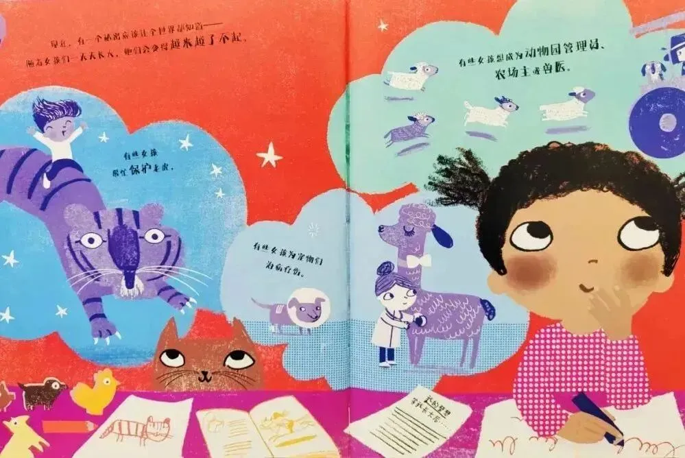 绘本故事明确传递“女孩可以做任何想做的事”的理念,打破传统性别角色限制,让女孩们看到自己拥有与男孩同等的可能性,鼓励她们勇敢探索不同领域。通过描绘女孩们克服困难、实现梦想的场景,传递“只要坚定信念,就没有做不到的事”的信念,帮助女孩们建立自信,勇敢面对挑战。