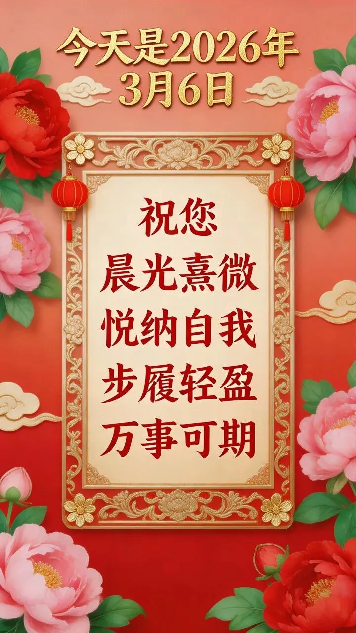 当前位置:首页>美女资讯>2026年3月6日祝福语壁纸:祝您 晨光熹微 悦纳自我 步履轻盈 万事可期