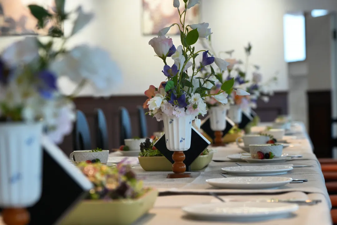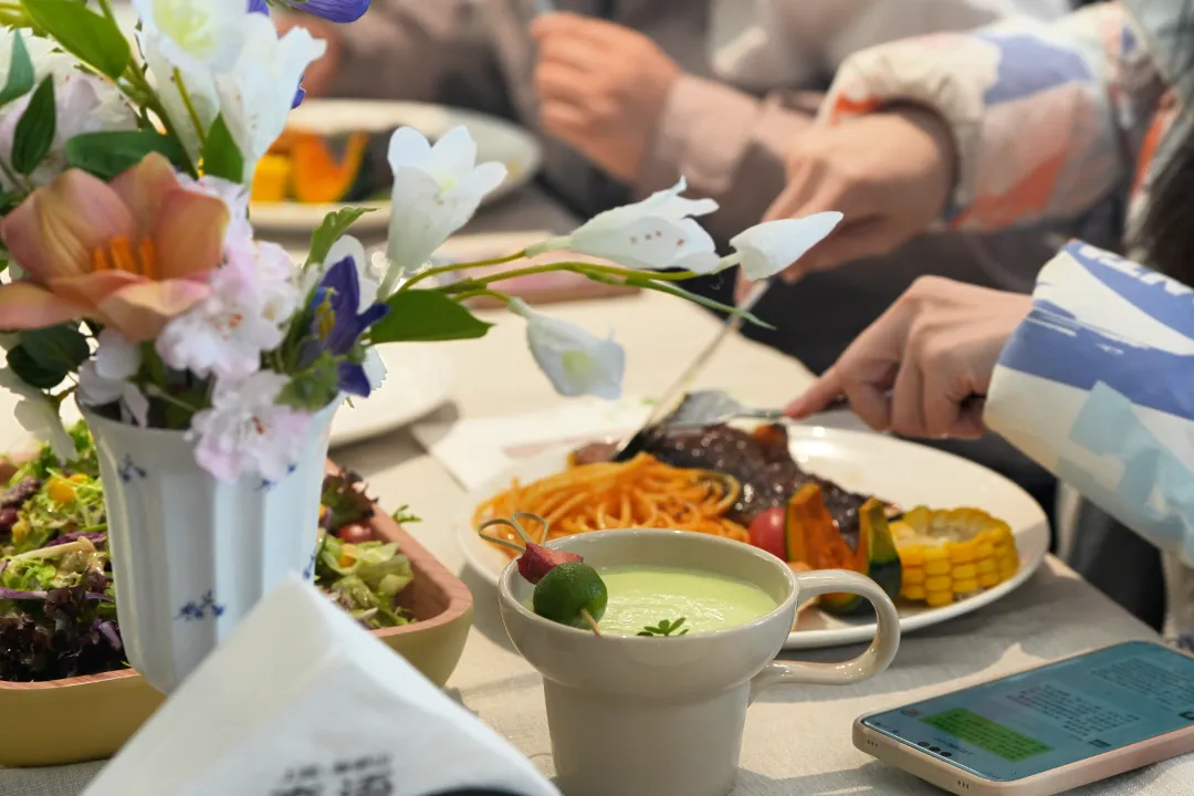 活动间隙,一场视觉与味觉的双重盛宴在森语餐厅优雅展开。被称为“漂亮饭”的午餐,不仅在于菜品的精致摆盘与缤纷色彩,更在于用餐环境与心境的共同营造。餐厅以自然雅致为设计基调,融入山水风光,为宾客提供了舒缓惬意的休憩空间。中西合璧的菜肴搭配,既注重口味的层次与融合,也讲究食材的时令与美感。大家在此慢享美食、畅叙心情,在轻松愉悦的氛围中补充能量,也为后续的创作环节注入了满满的灵感与活力。