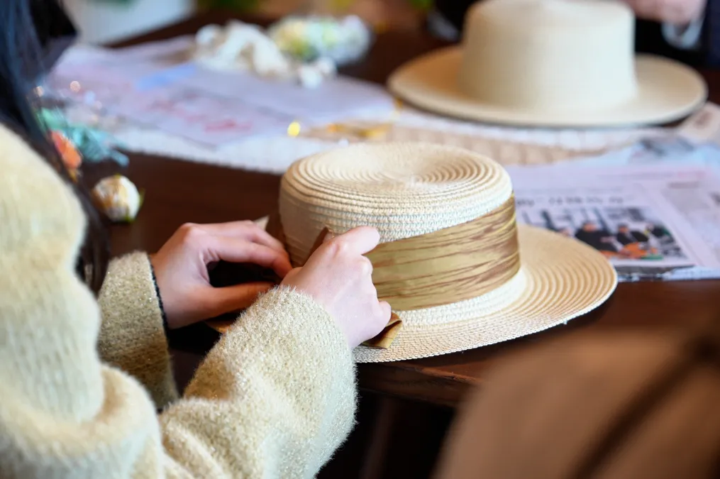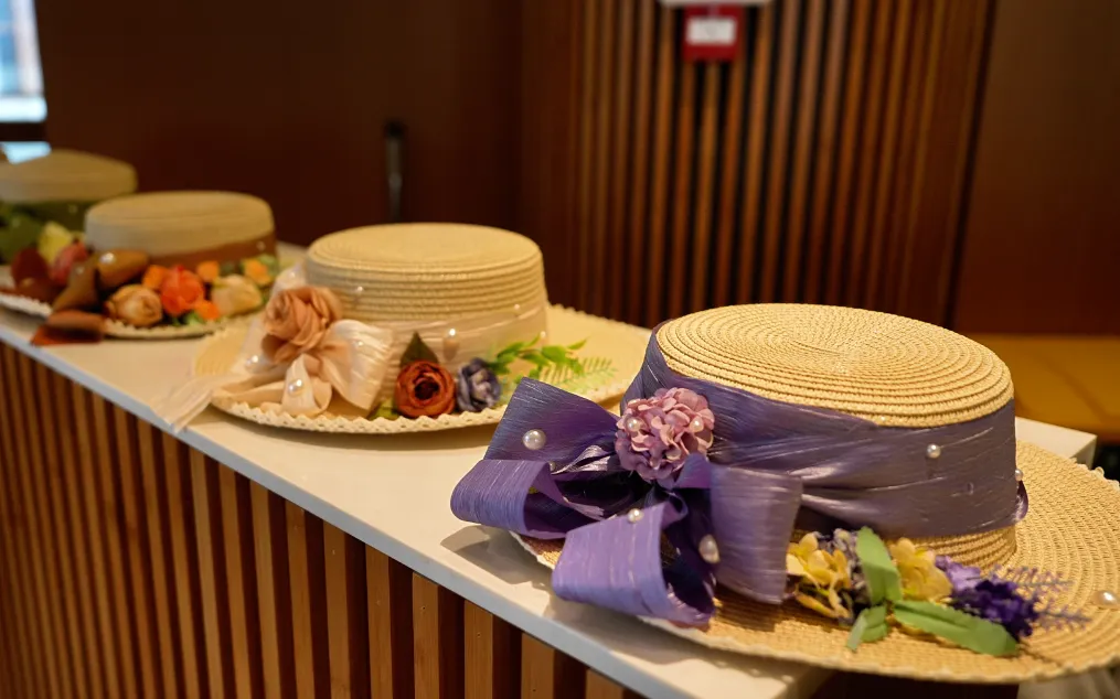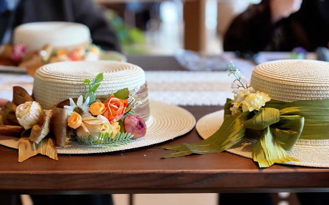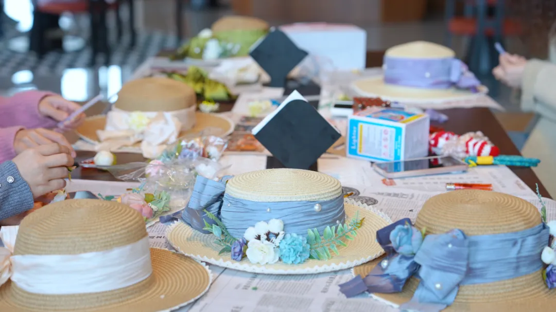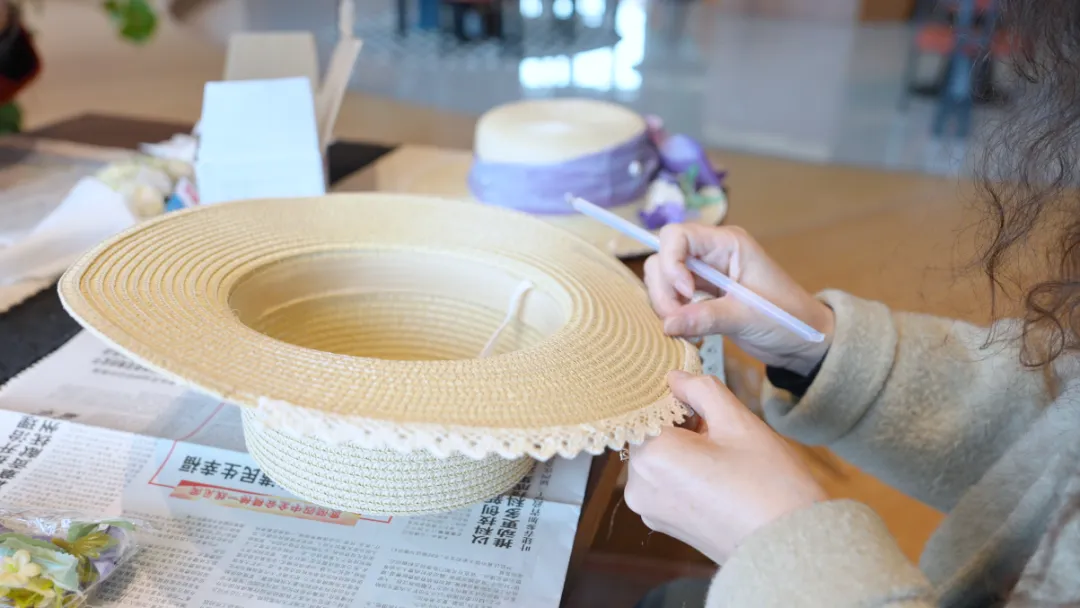 创意从指尖延续至发梢。参与者以简约草帽为画布,运用干燥花材、柔韧藤蔓、飘逸丝带等素材,通过巧思点缀与细心装饰,将自然的馈赠转化为头冠上的艺术。一顶顶独一无二的“春日礼帽”逐渐成型,它不仅是一件手工艺品,更是一份“戴”在身上的春日心情与浪漫宣言,步履流转间,自成一道流动的风景。